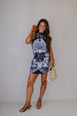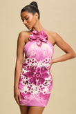 Flower Printed Halter - Neck Mini Dress