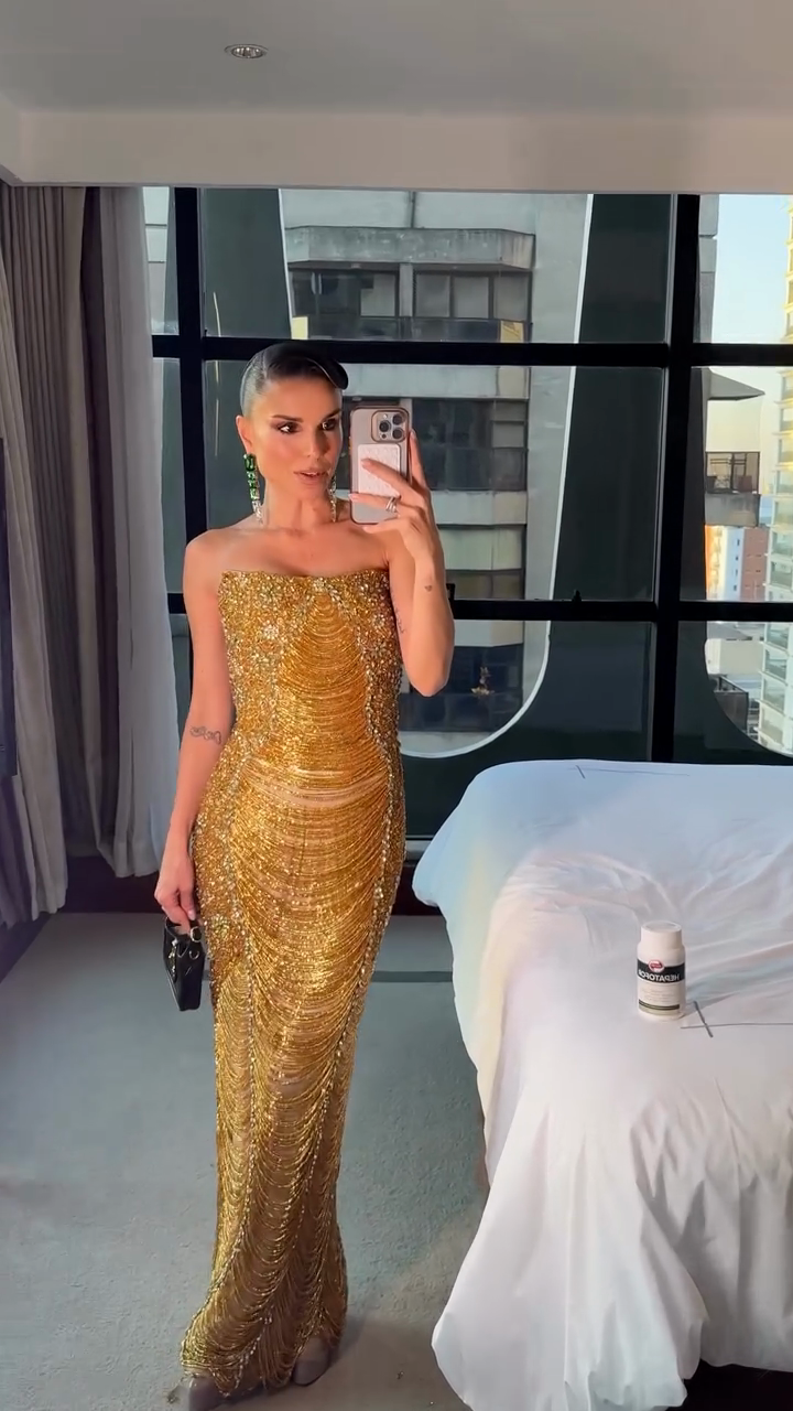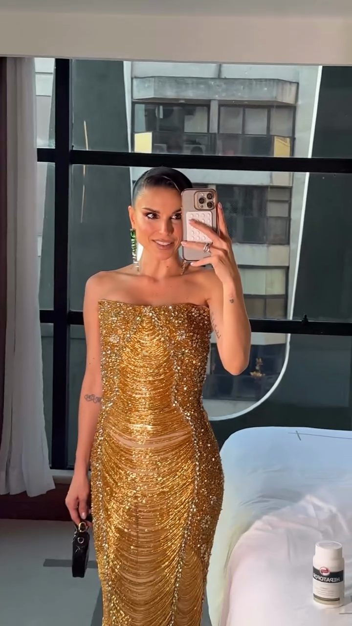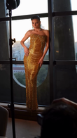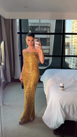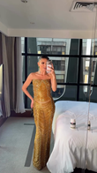 Gold Beaded Strapless Maxi Dress