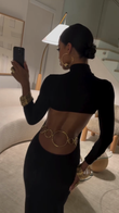 Gold Belt Black Backless Maxi Dress
