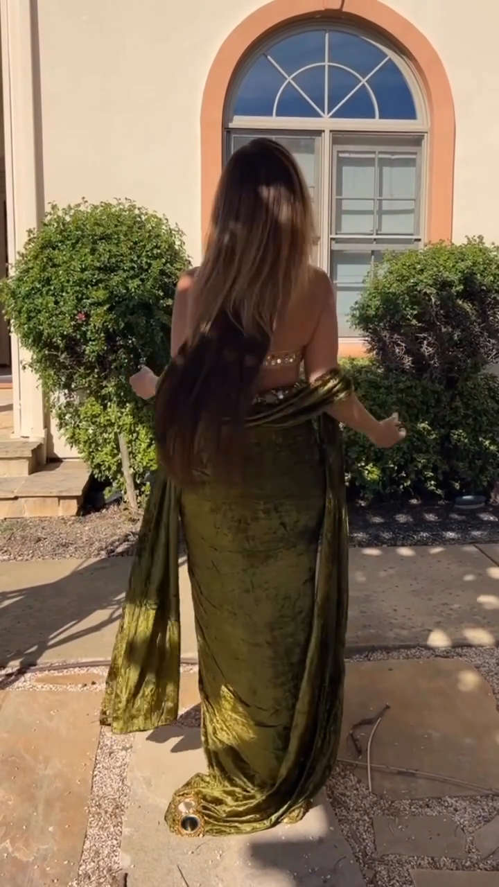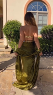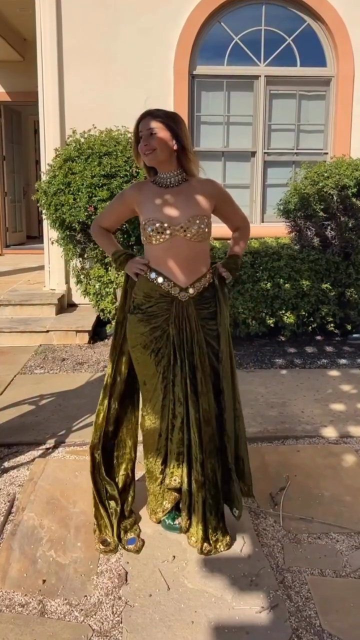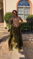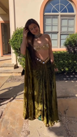 Gold Embellished Corset and Olive Green Draped Skirt Set