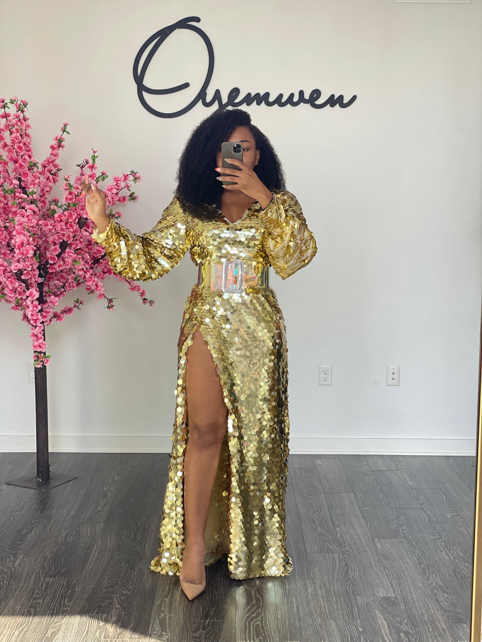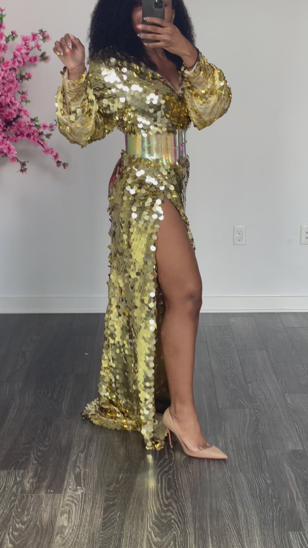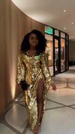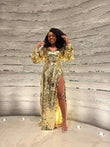 Gold Sequin Long - Sleeve Maxi Dress