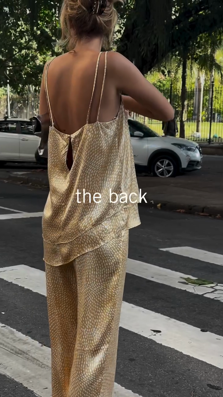 Gold Spaghetti Strap Top and Wide - leg Pants Set