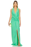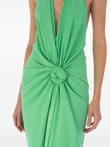 Green Halter - Neck Maxi Dress with Knot Detail