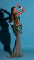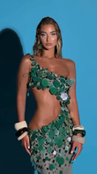 Green One - Shoulder Sequin and Disc Embellished Gown