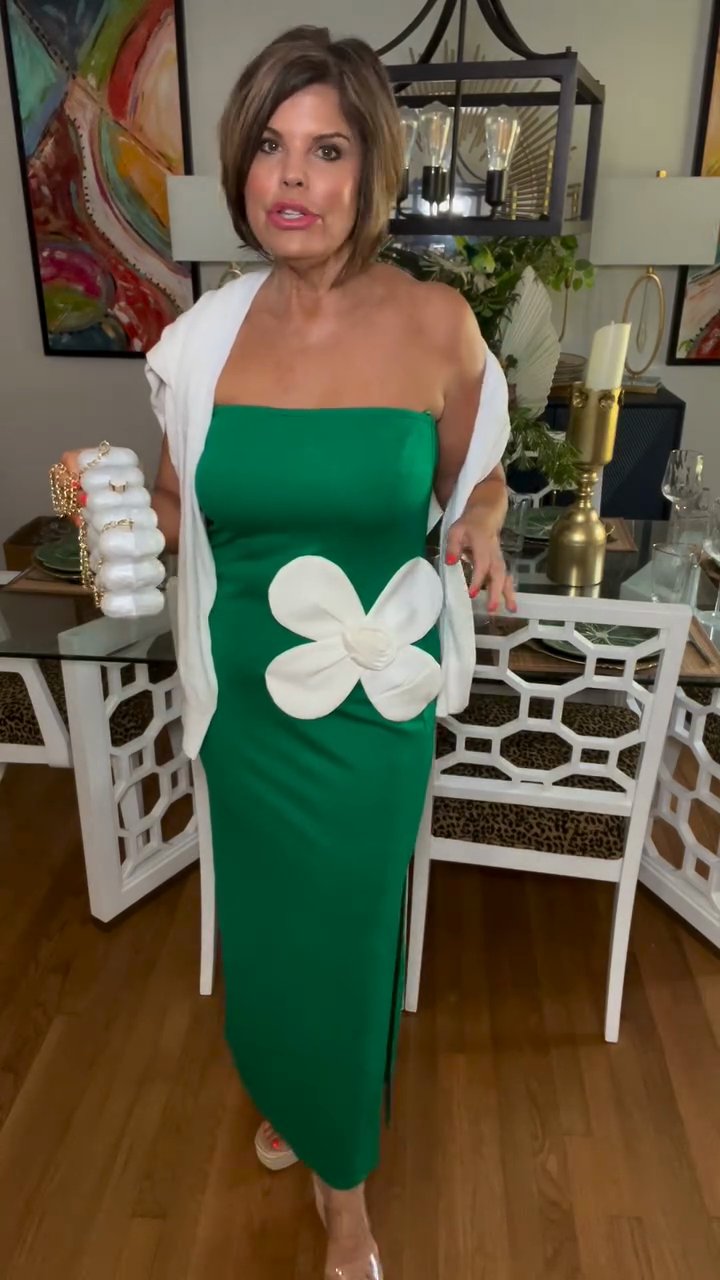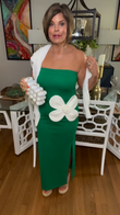 Green Strapless Midi Dress with Large White Floral Detail
