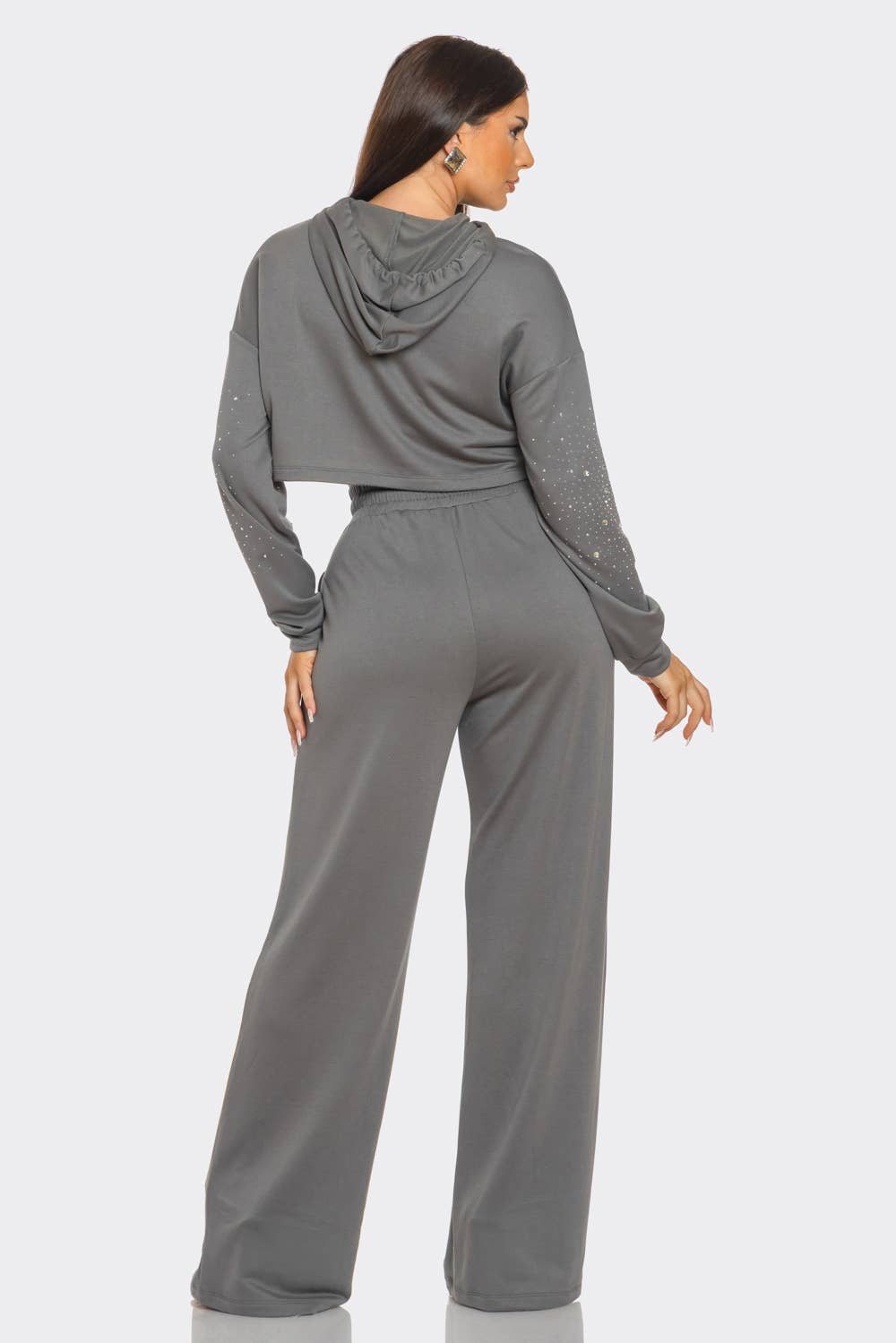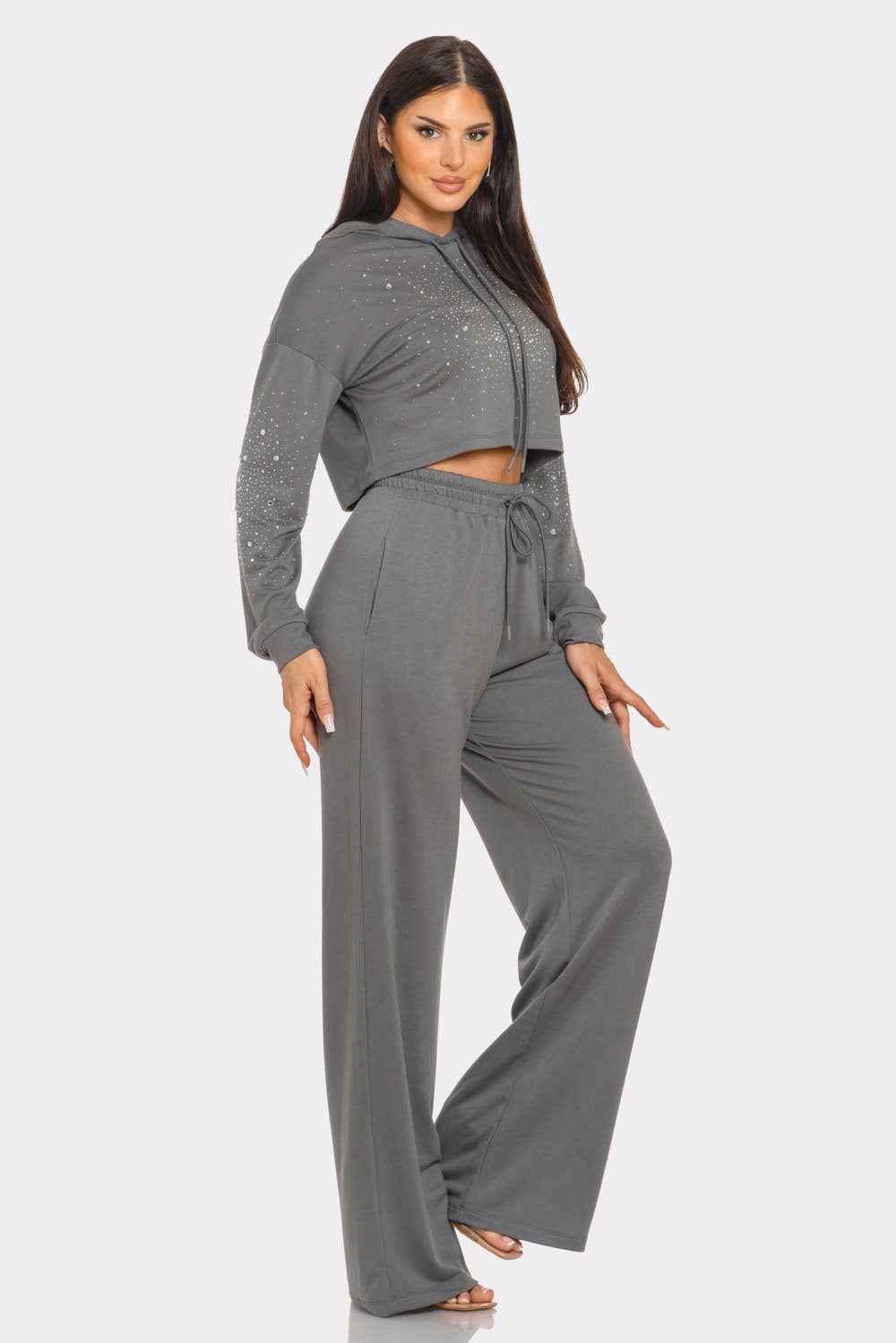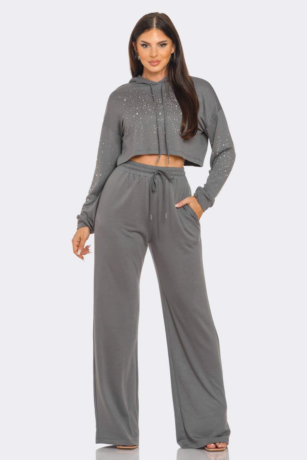 Grey Cropped Hoodie and Wide - leg Pants Loungewear Set