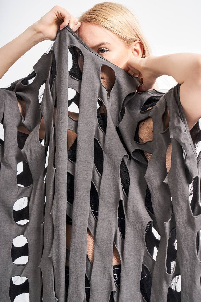 Grey Cut - Out Poncho - Style Dress
