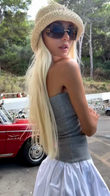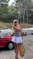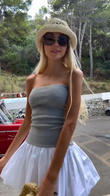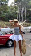 Grey Strapless Tube Top and White Pleated Mini Skirt Set