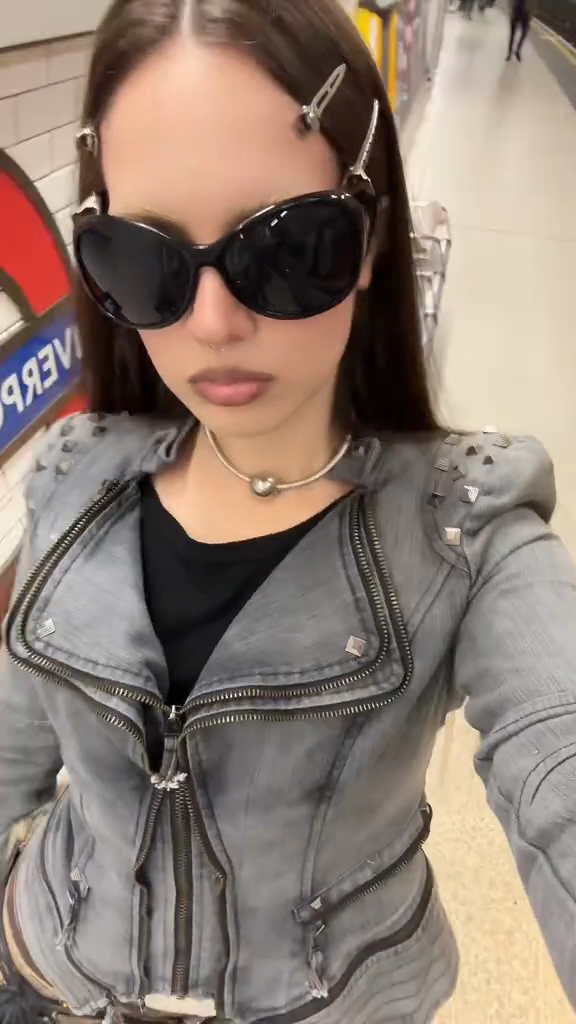 This gray moto jacket exudes a rebellious chic vibe with its classic asymmetrical zipper design. Rivets on the shoulders and jacket add an edgy touch, making it particularly eye-catching. Made from durable fabric, this jacket combines comfort with a rugged look. Multiple zippers enhance the design and allow for an adjustable fit. It adds a cool, urban edge to any look. As shown, it pairs perfectly with a simple black top. Perfect for layering, whether for a casual outing, a concert, or everyday wear. Its neutral gray colorway makes it easy to pair with a variety of bottoms and accessories.