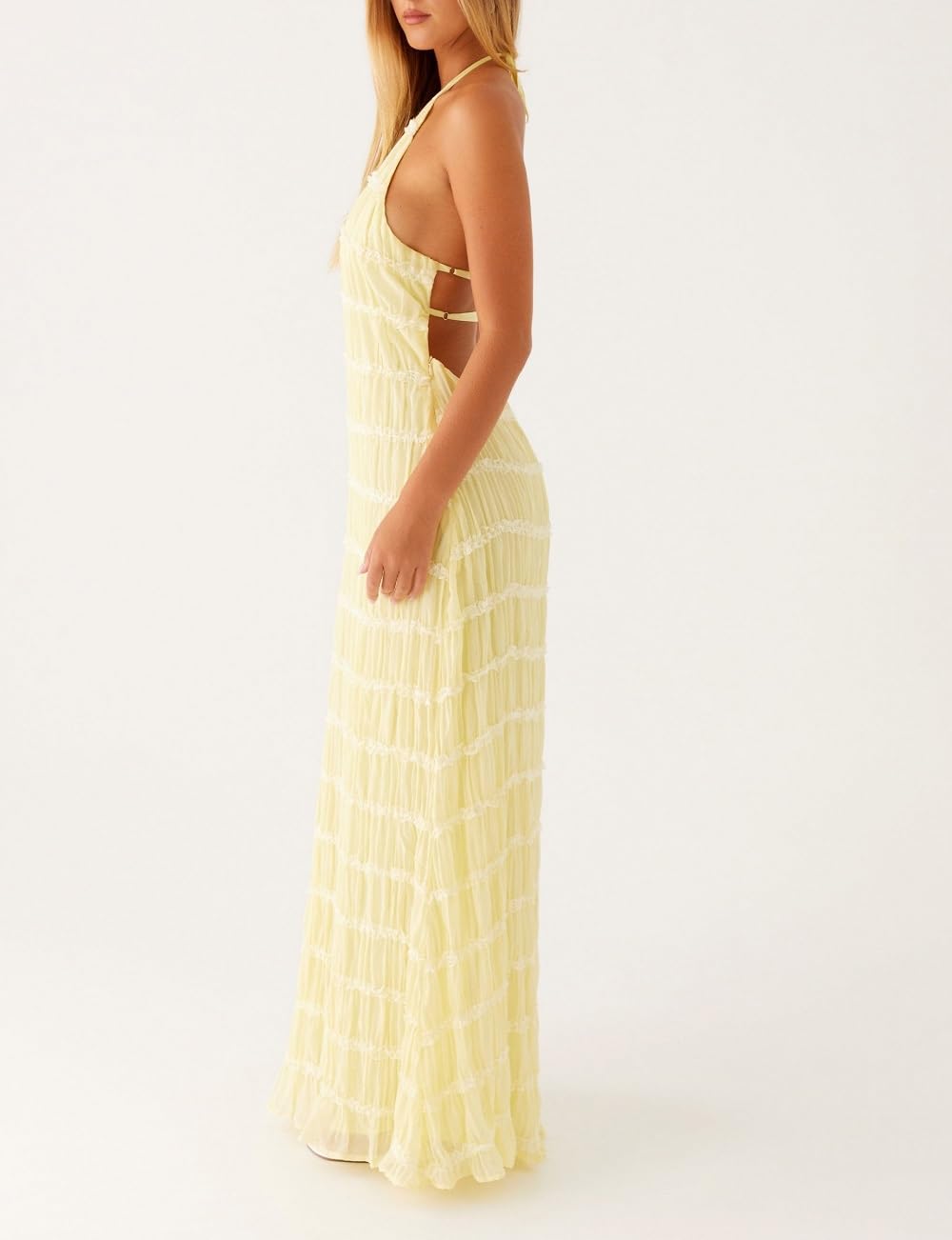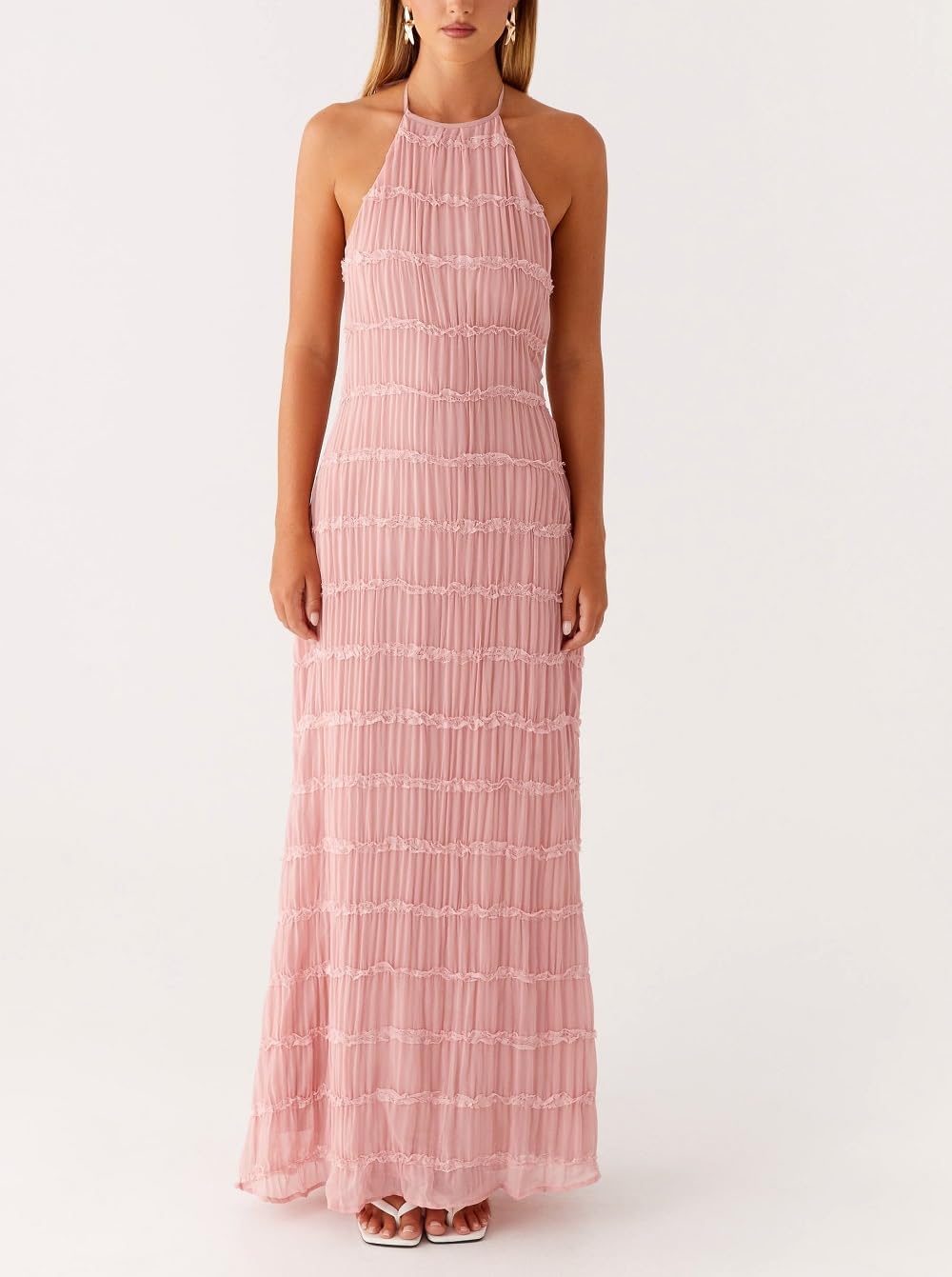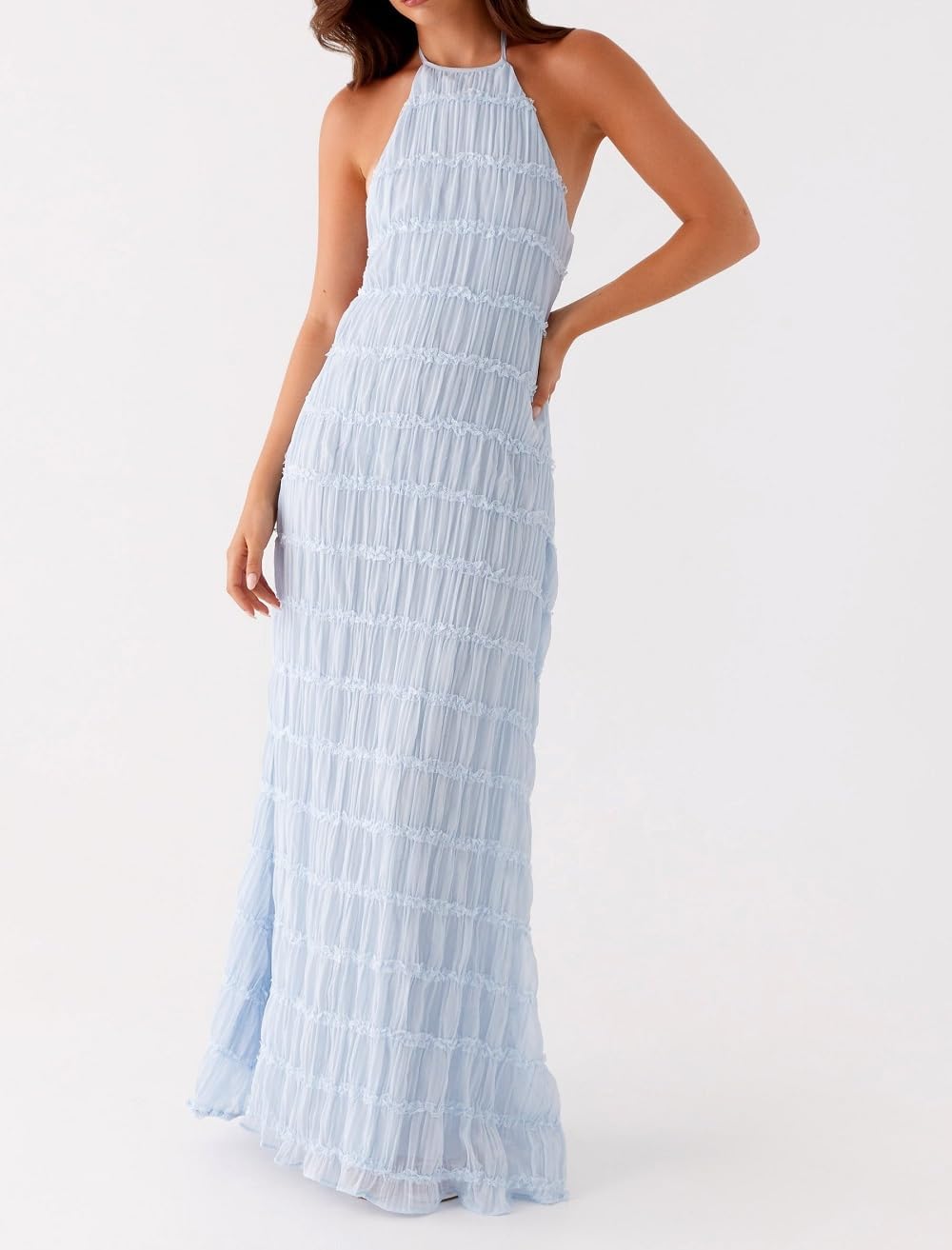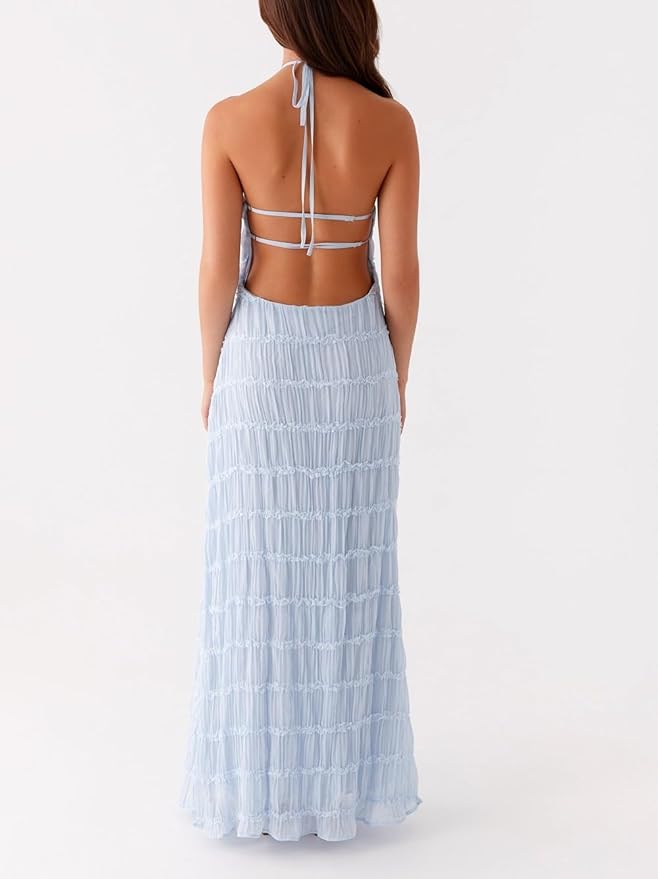 Halter Neck Tiered Ruffle Maxi Dress