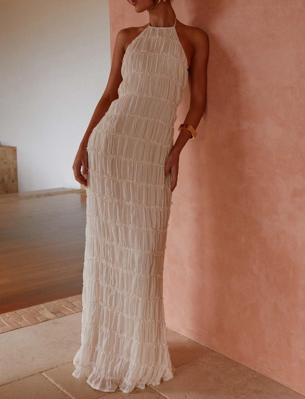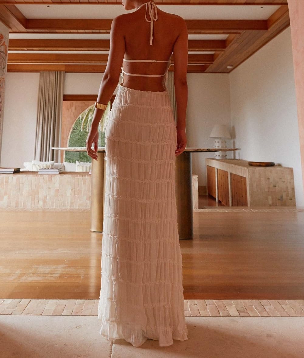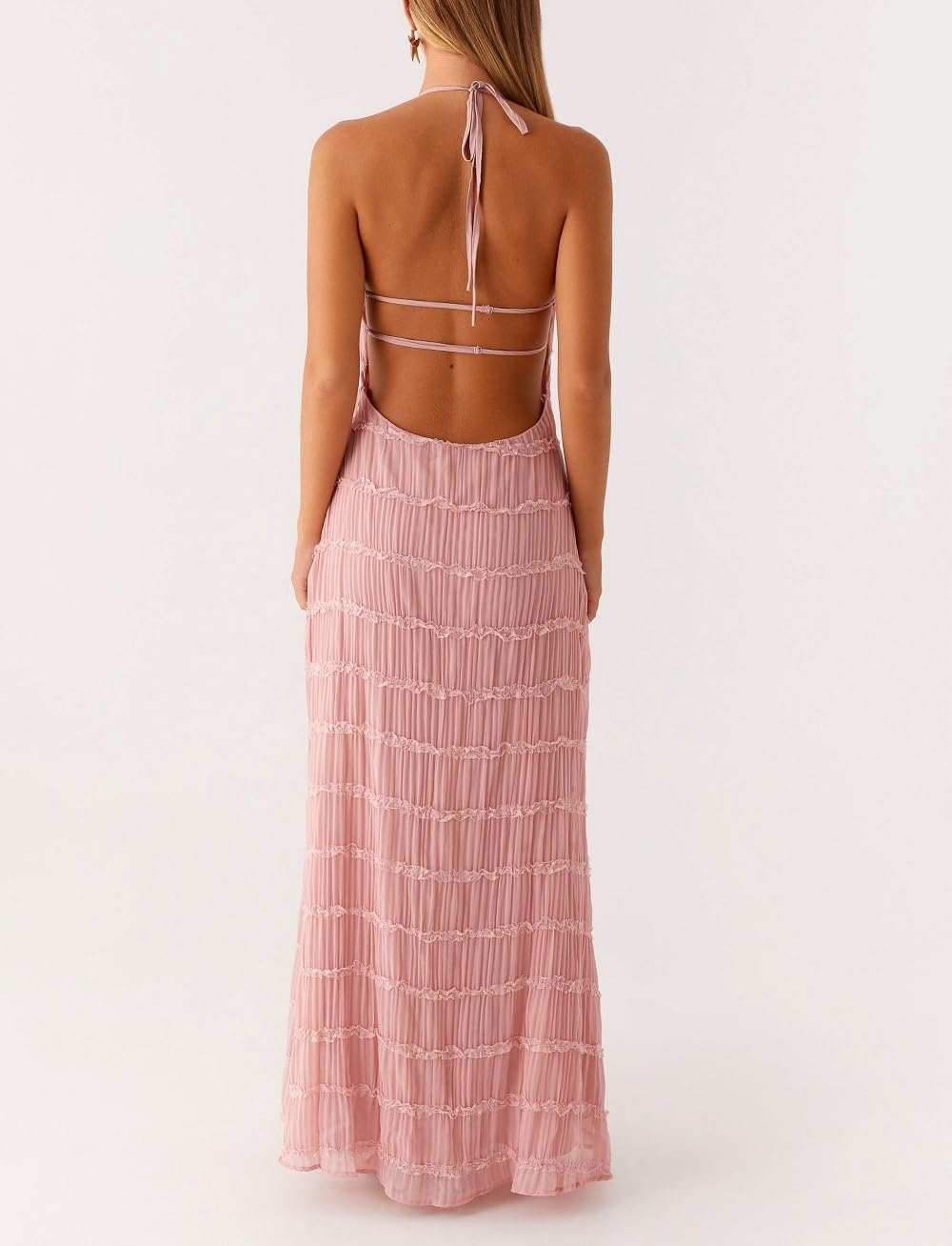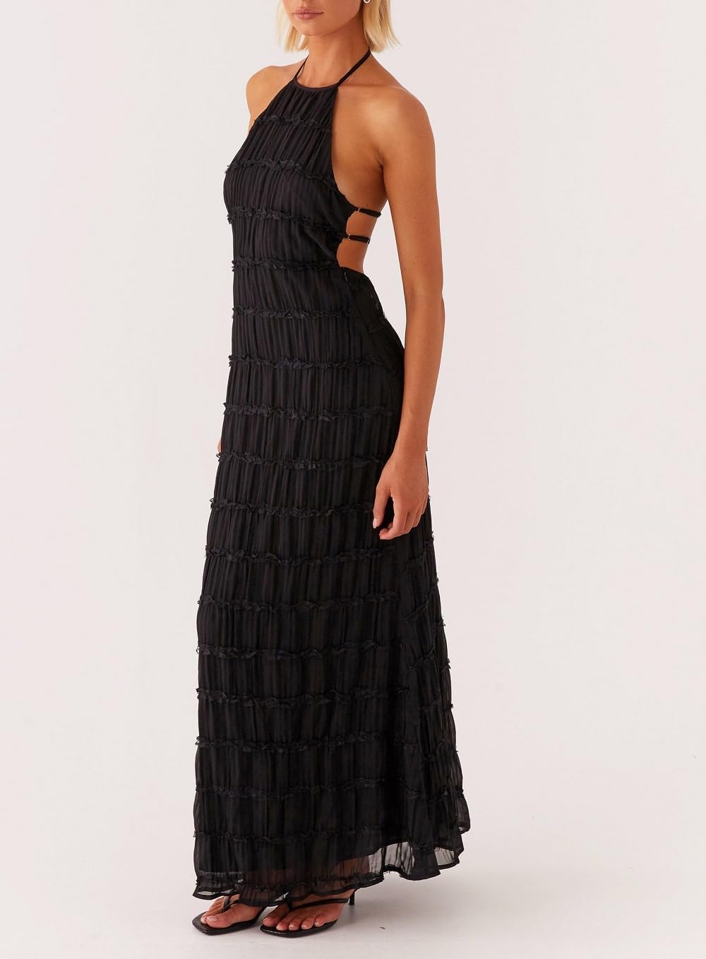 Halter Neck Tiered Ruffle Maxi Dress