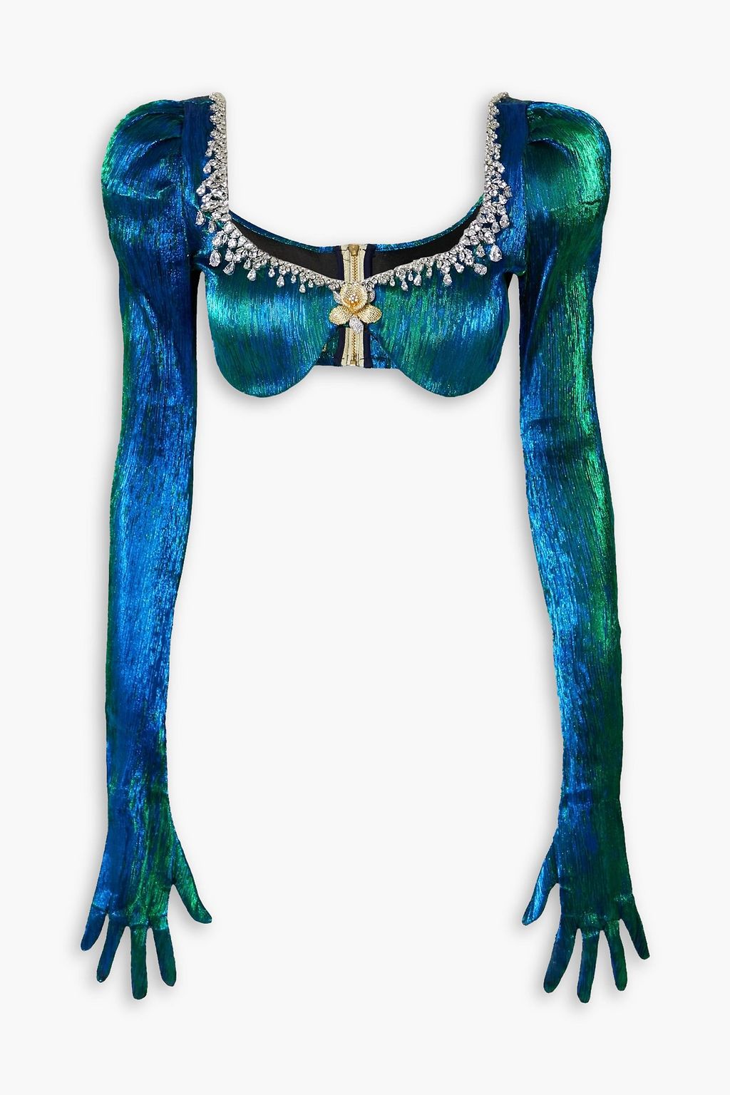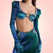 Iridescent Teal Puff - Sleeve Crop Top and Mini Skirt Set