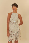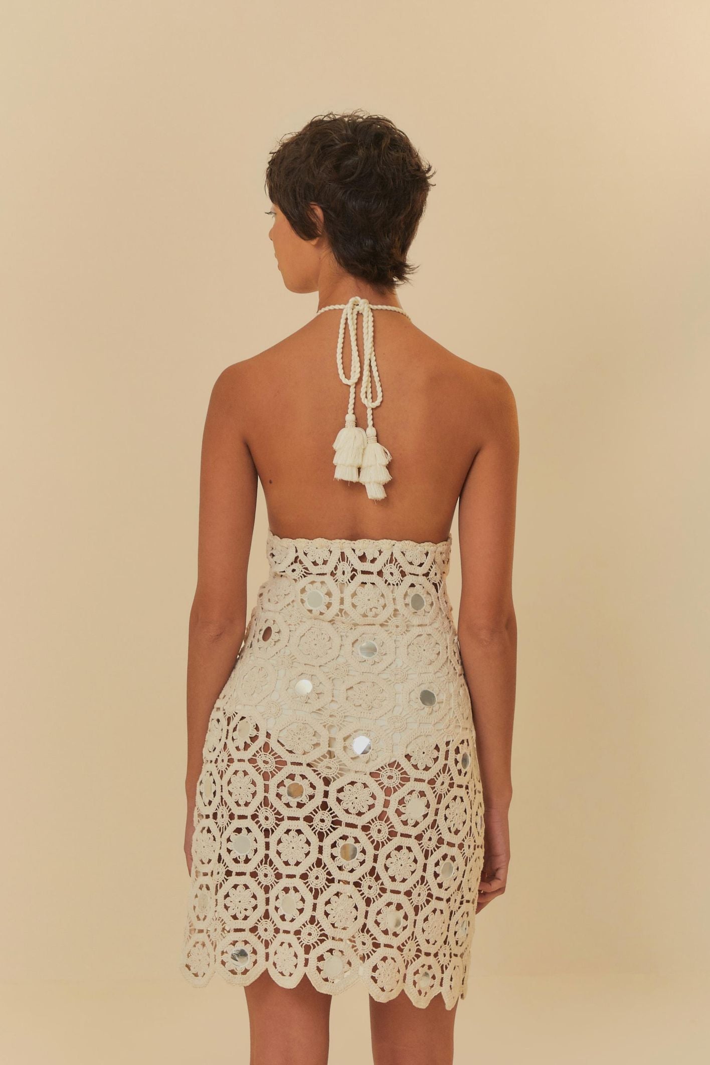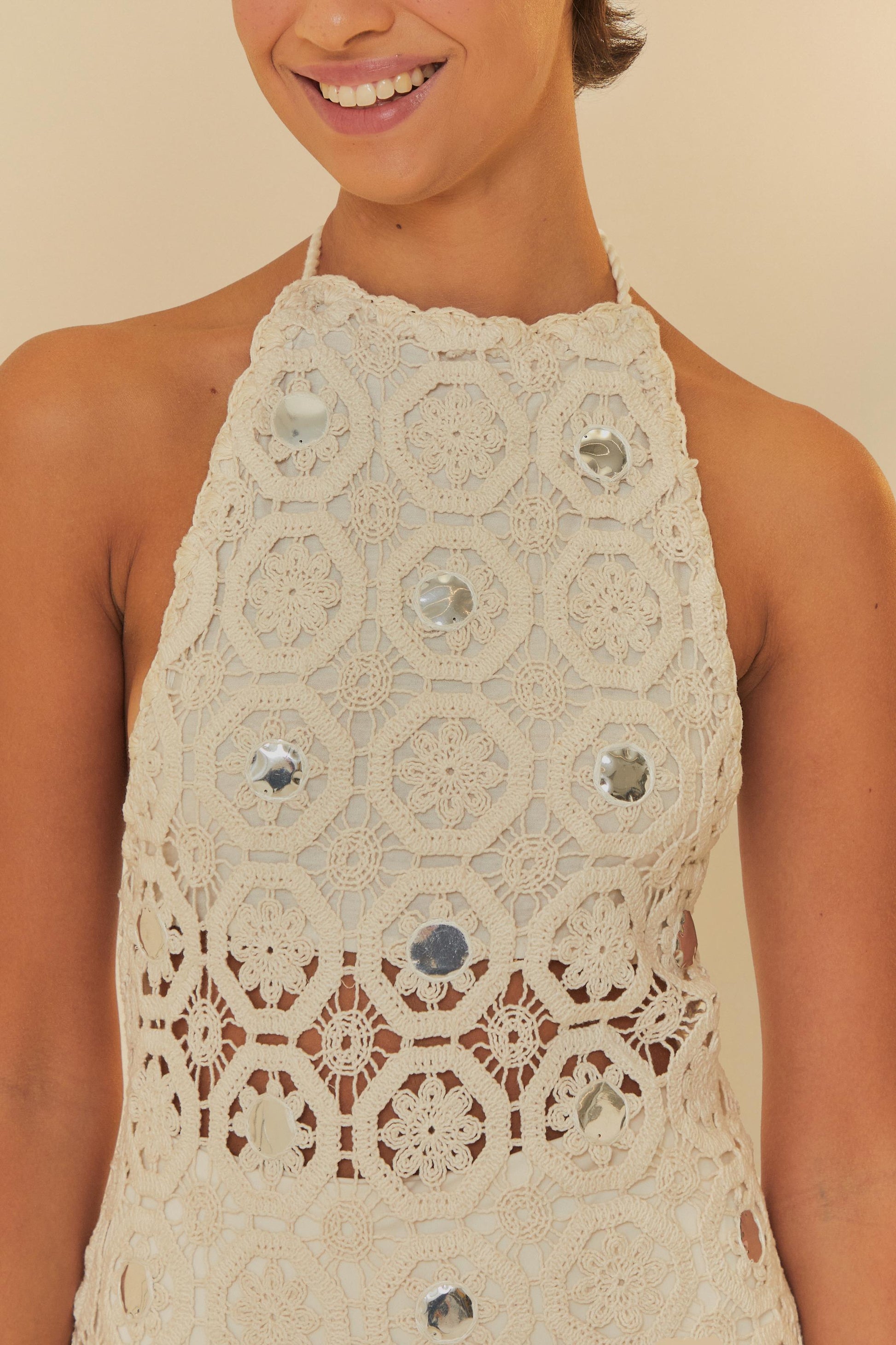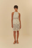 Ivory Crochet Halter - neck Mini Dress with Sequin Embellishments