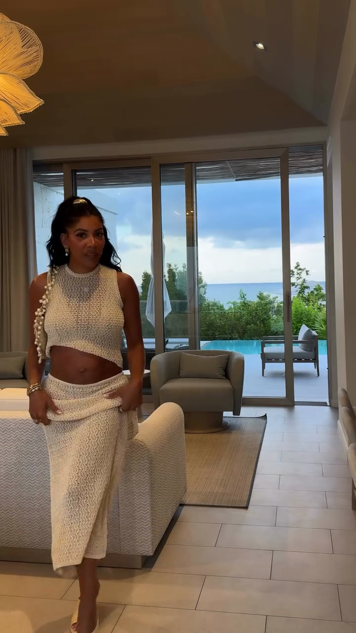 Ivory Crochet Sleeveless Crop Top and Midi Skirt Set