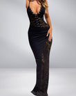 Lace Embellished Halter Maxi Dress
