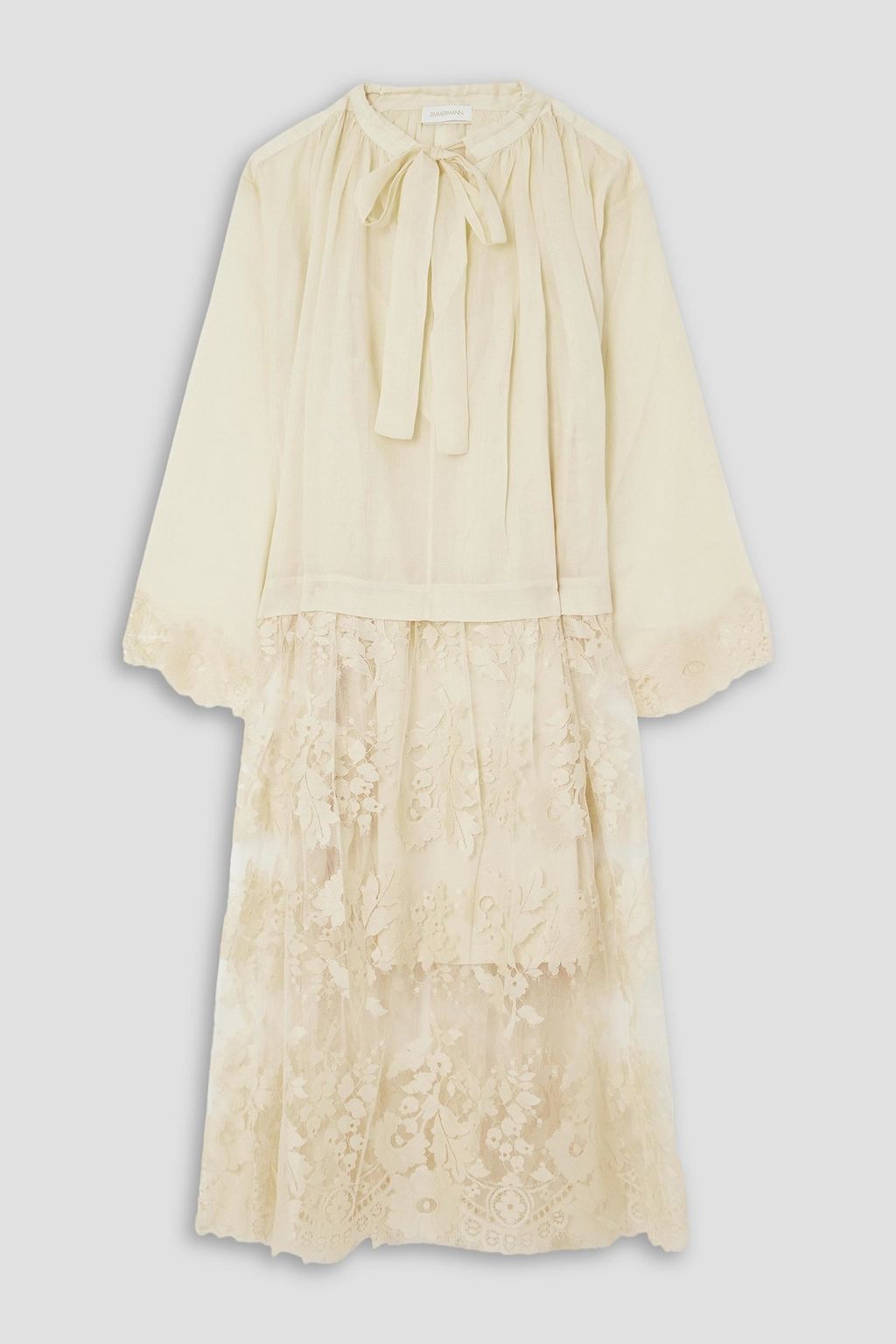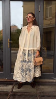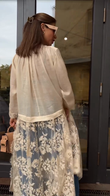Lace - Trimmed Sheer Overlay Shirt Dress