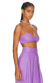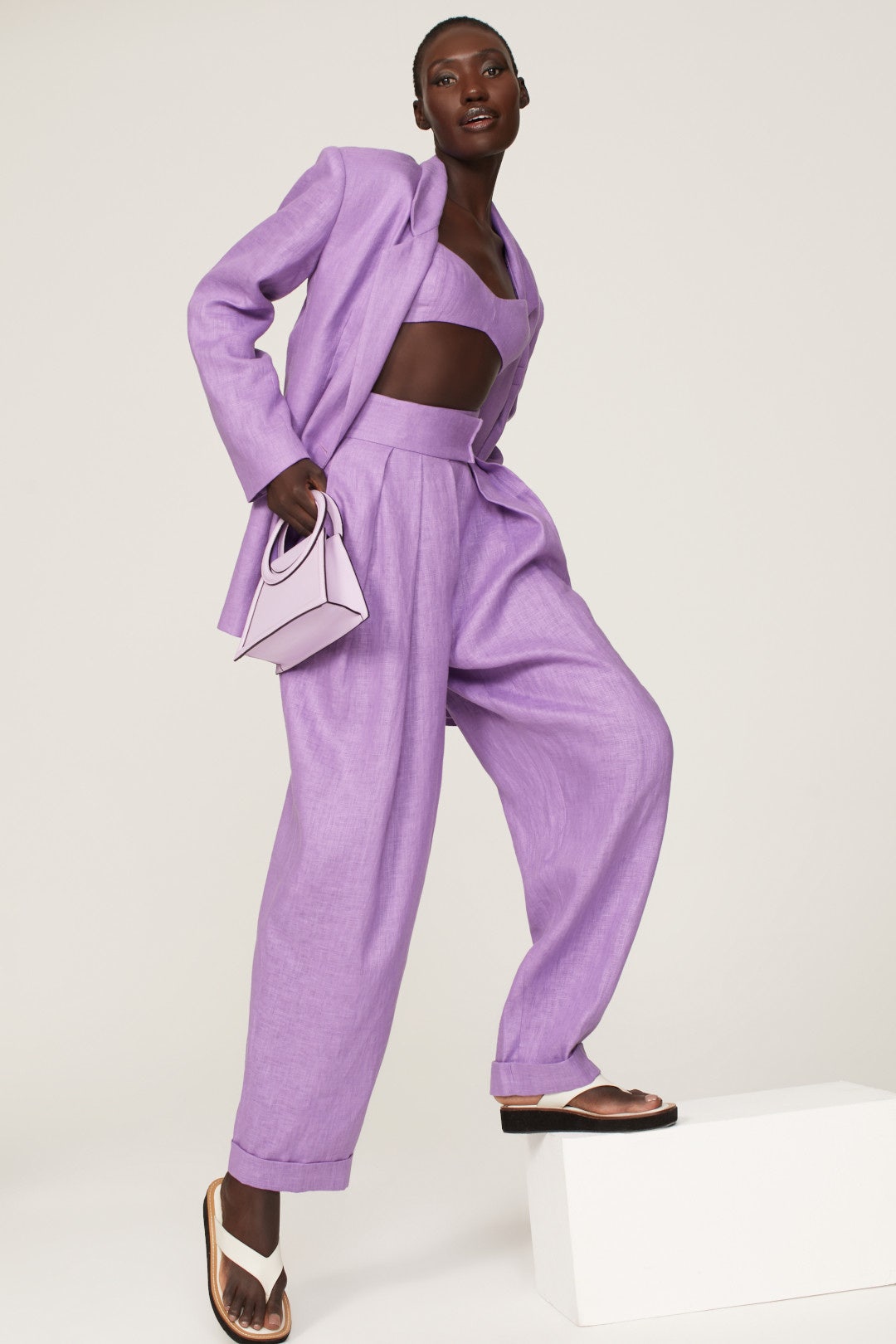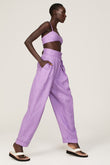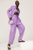 Lavender Linen Crop Top and High - Waist Wide - Leg Pants Set
