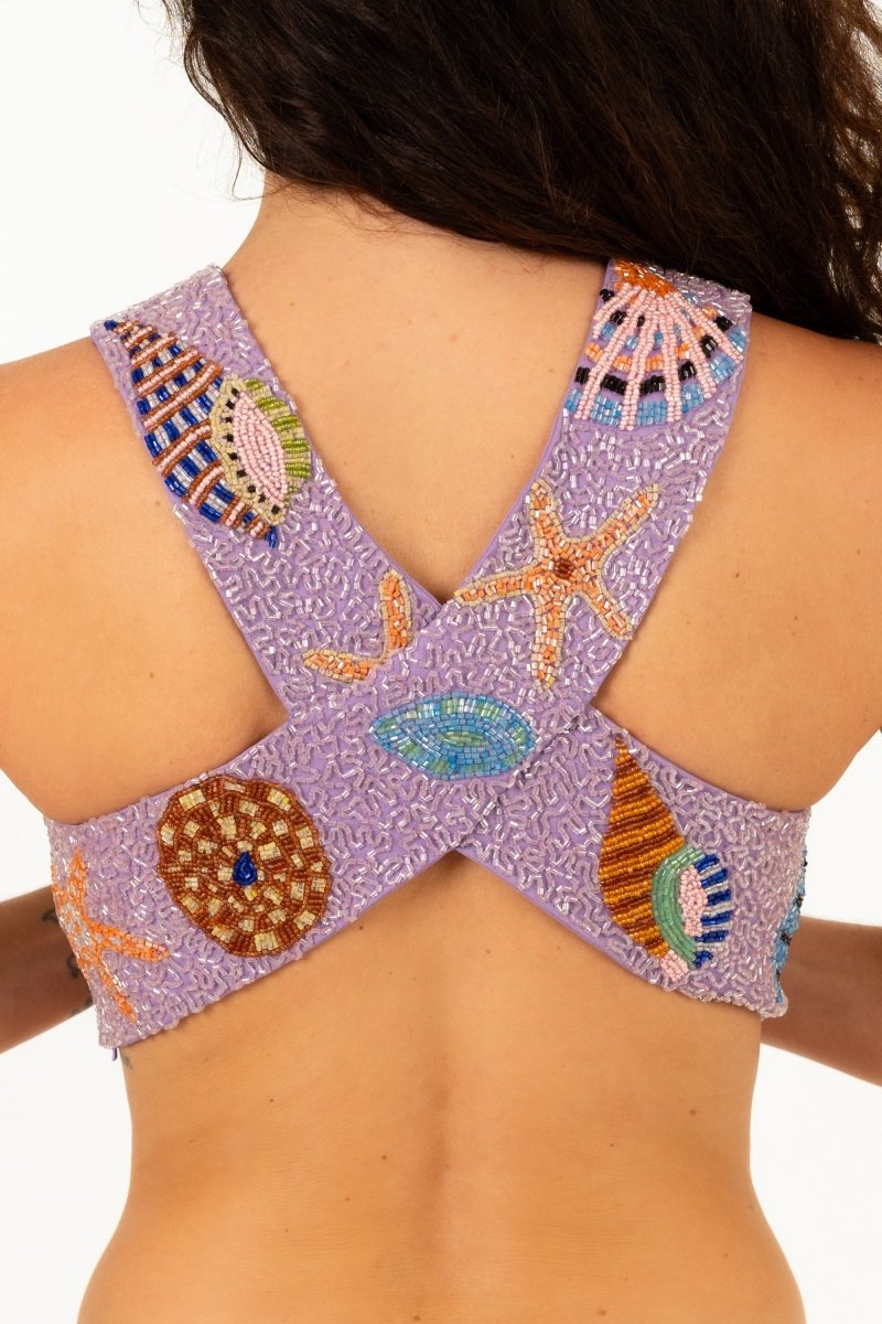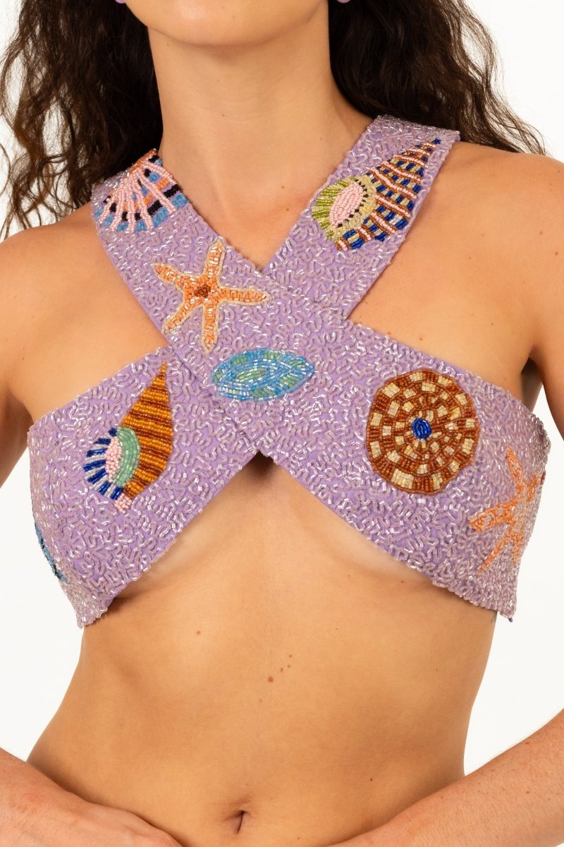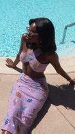 Lavender Sequin - Embellished Halter Crop Top and Mermaid Skirt Set
