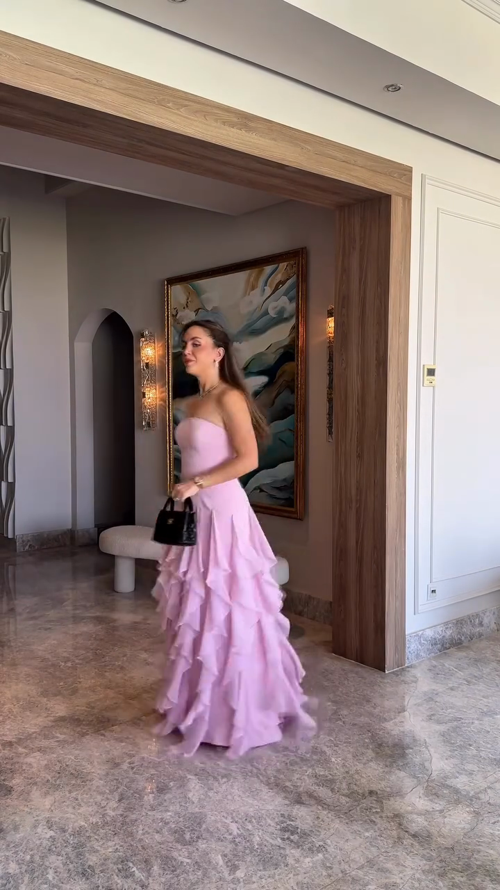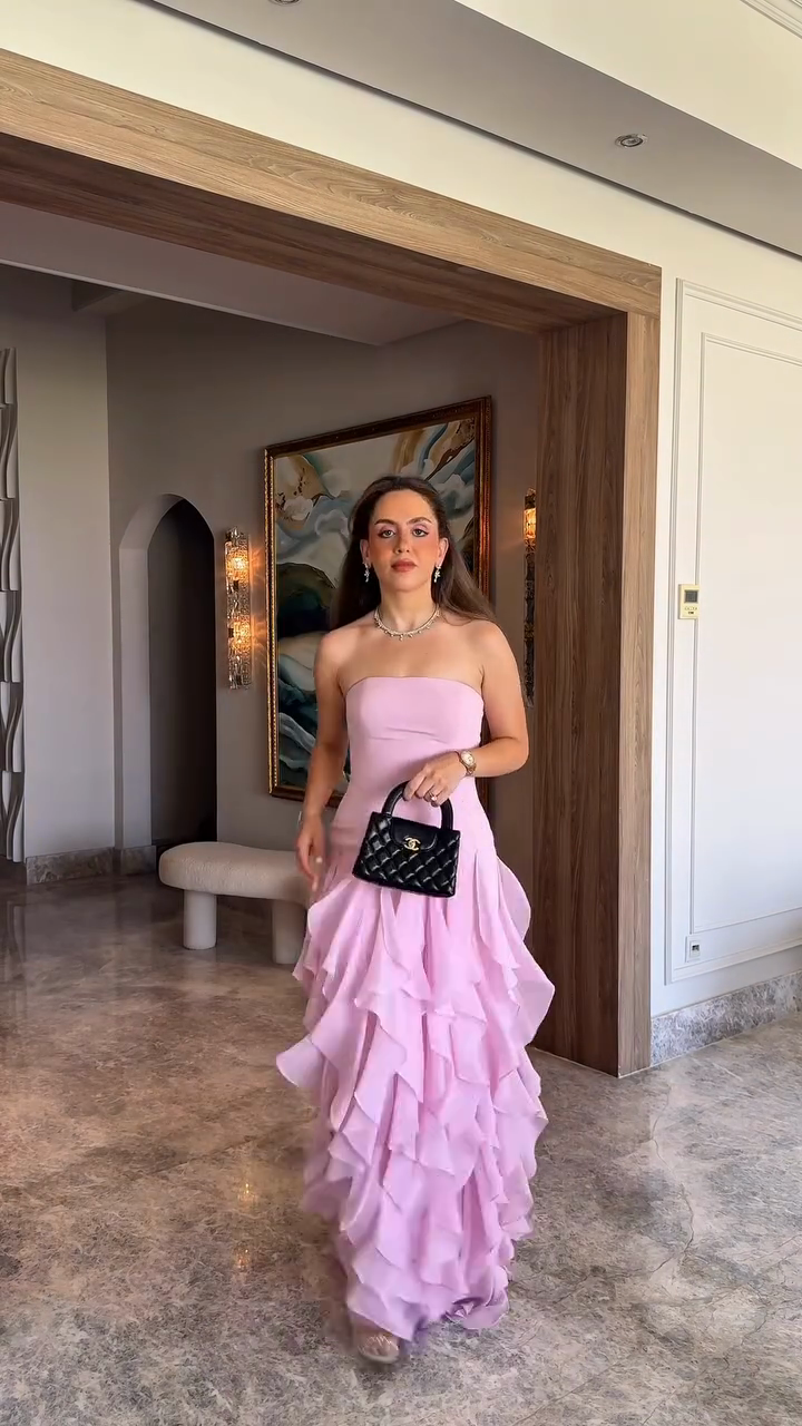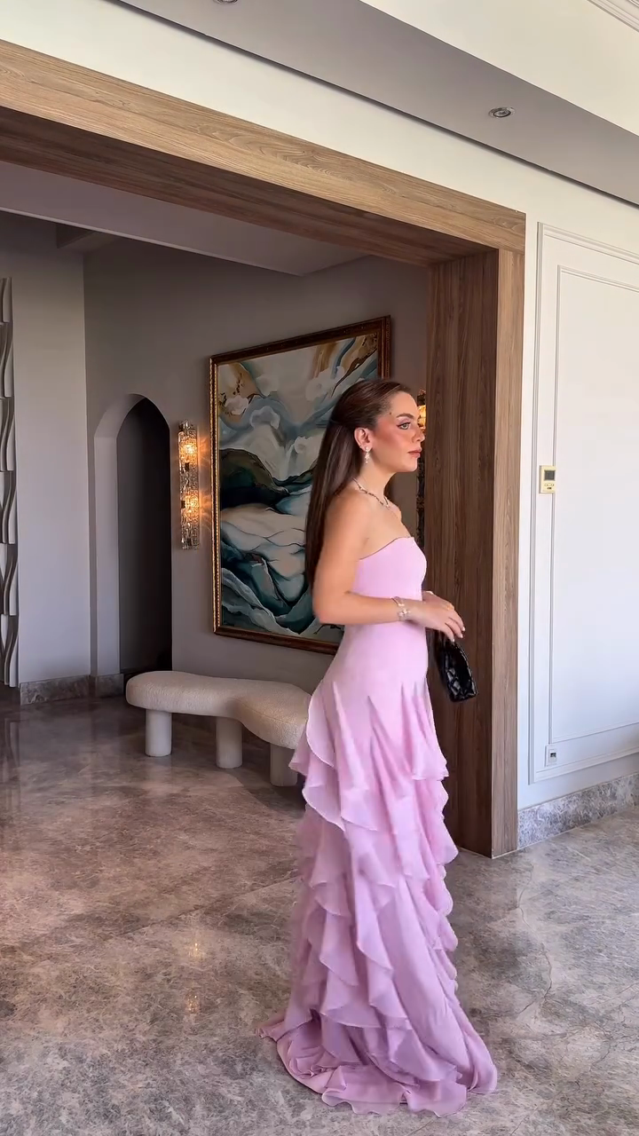Lavender Strapless Ruffled Maxi Dress