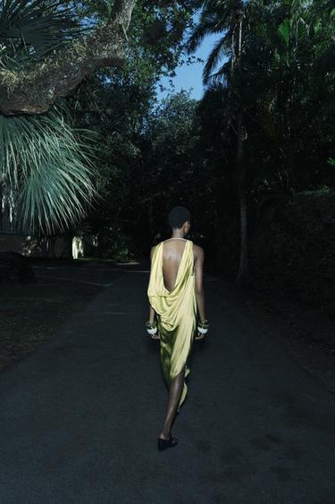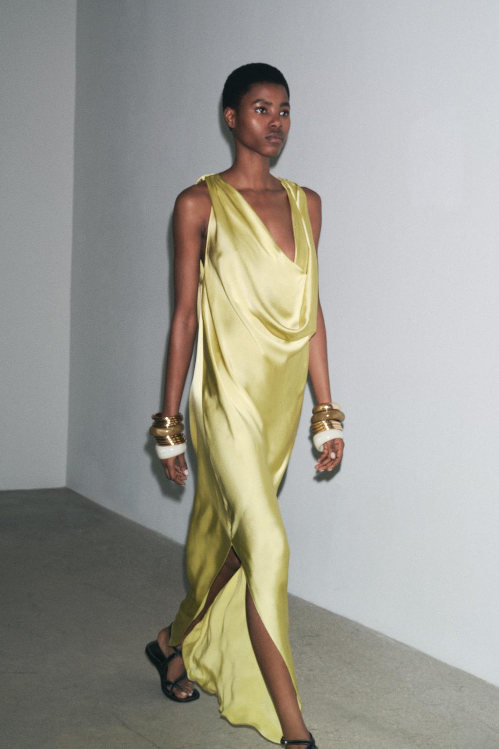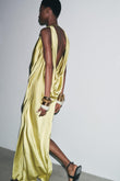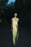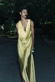 Lemon Yellow Satin Cowl Neck Maxi Dress