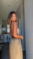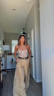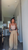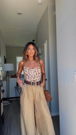 Leopard print camisole and beige wide-leg pants set