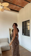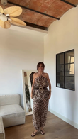 Leopard Print Halter Top & Wide - Leg Pants Set