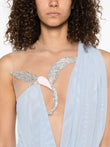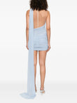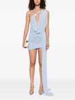 Light Blue Asymmetric Draped Mini Dress with Sheer Details