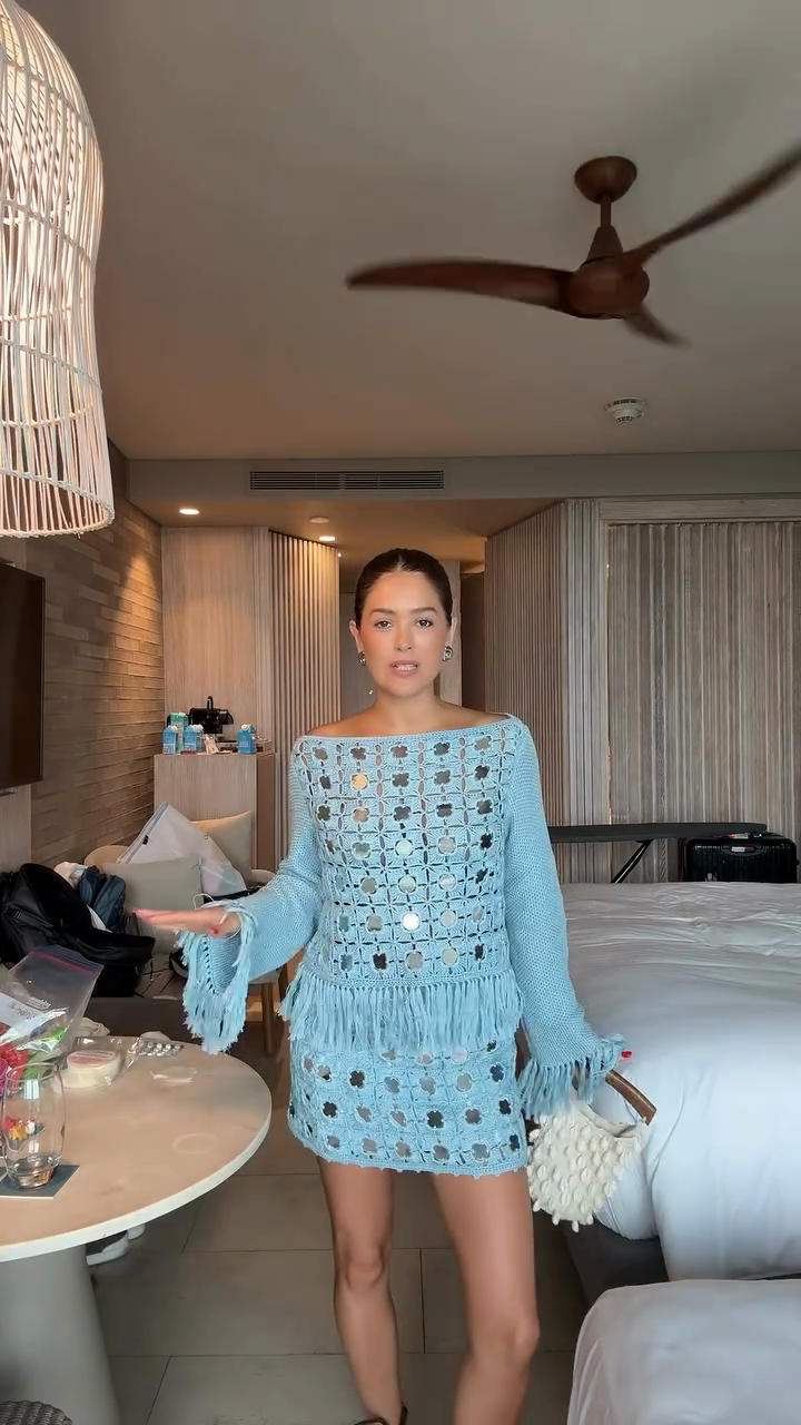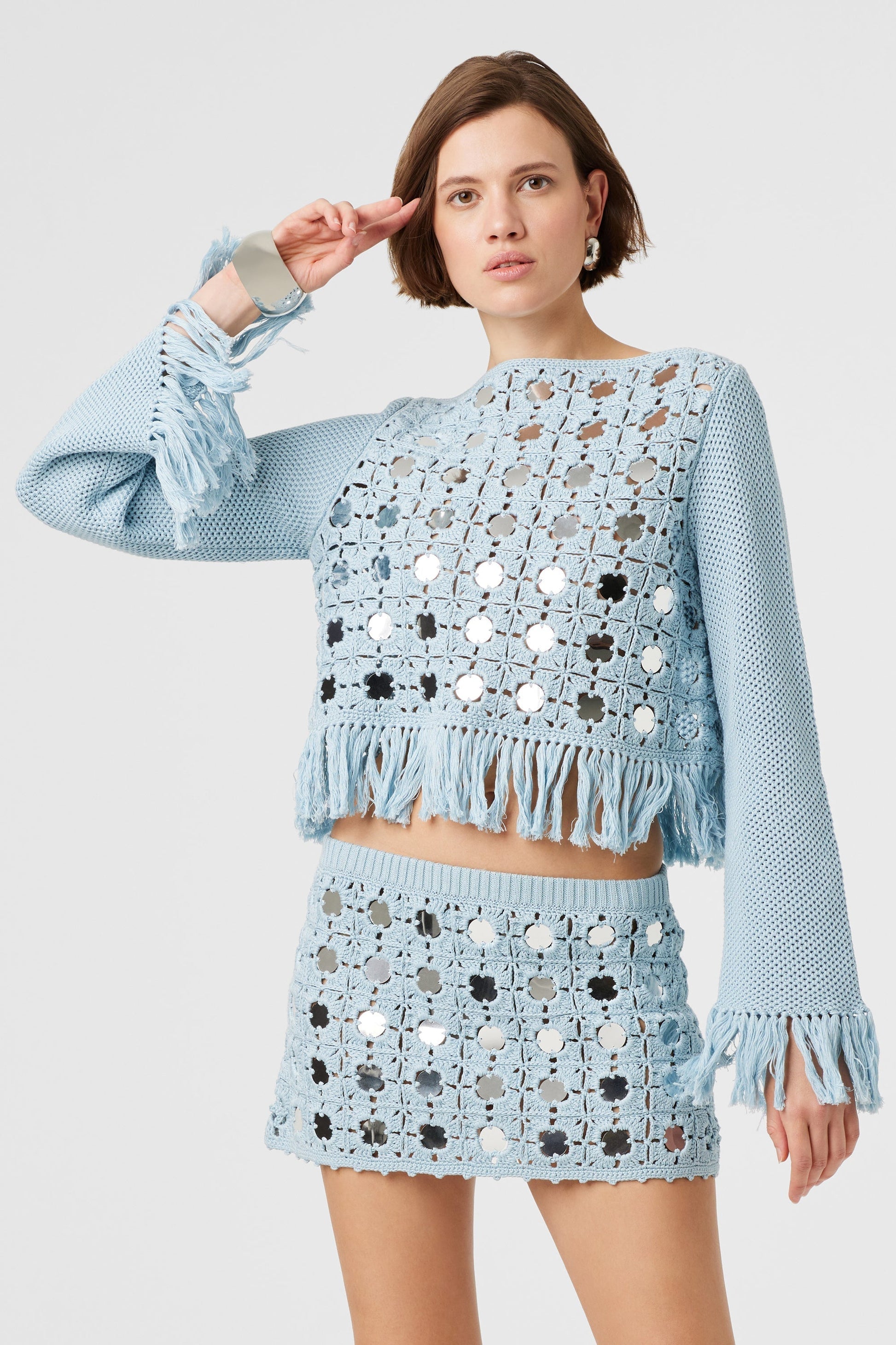 Light Blue Crochet Mirror - Embellished Two - Piece Set