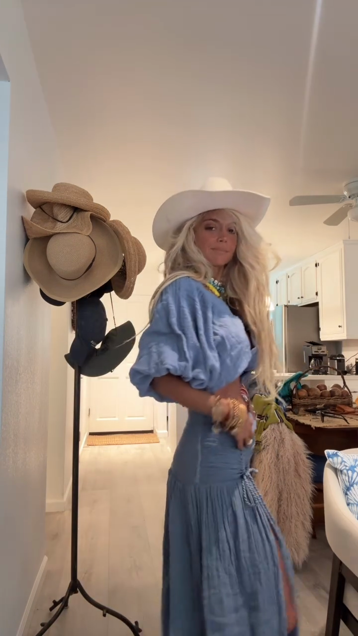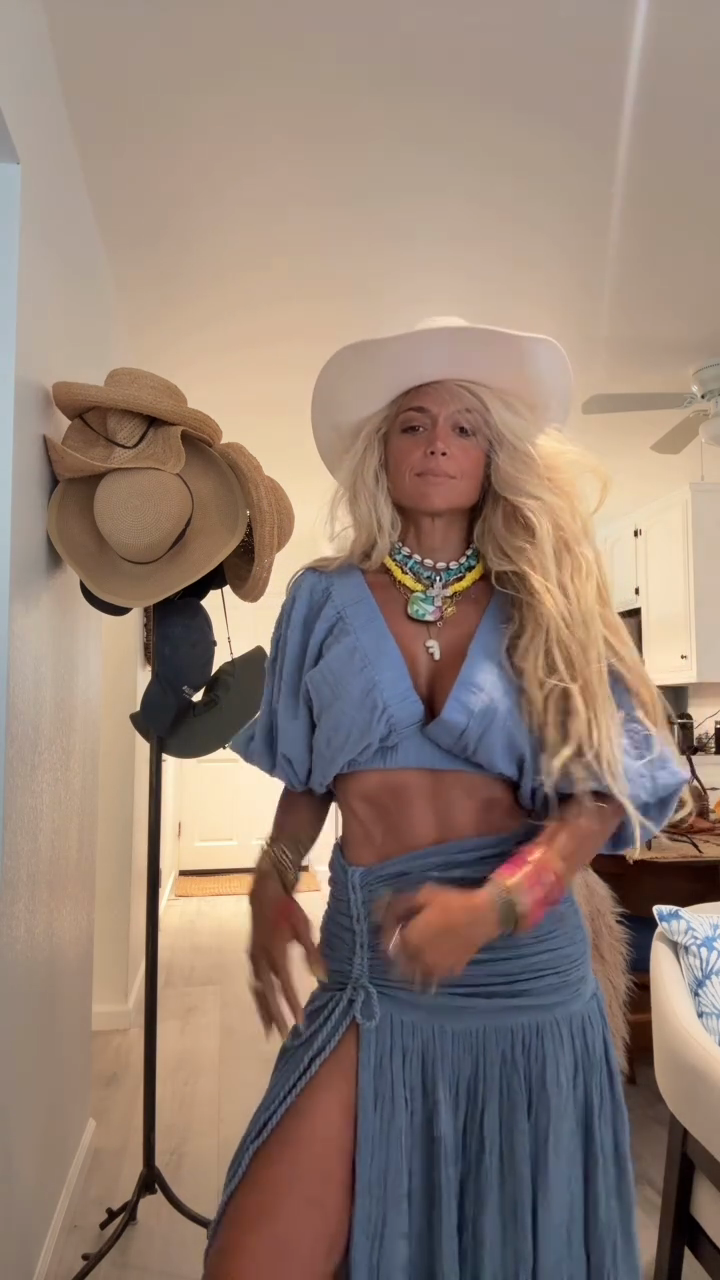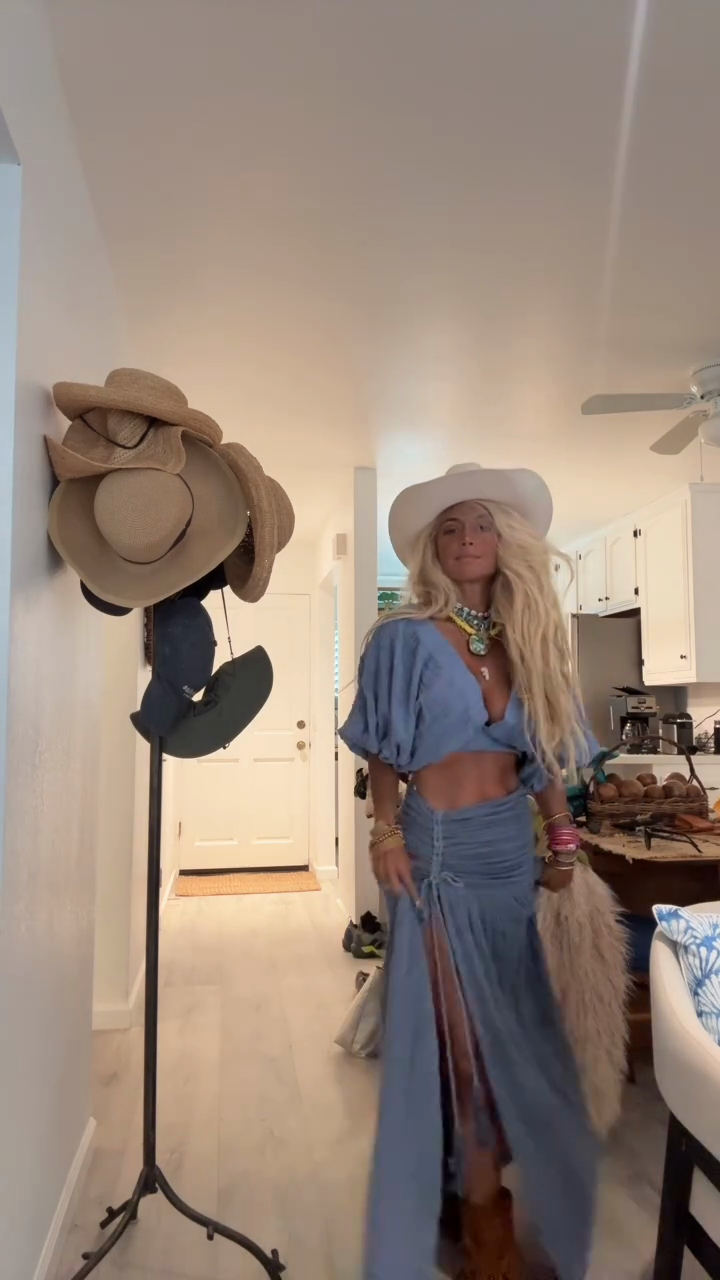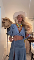 Light Blue Cropped Top and High - slit Skirt Set