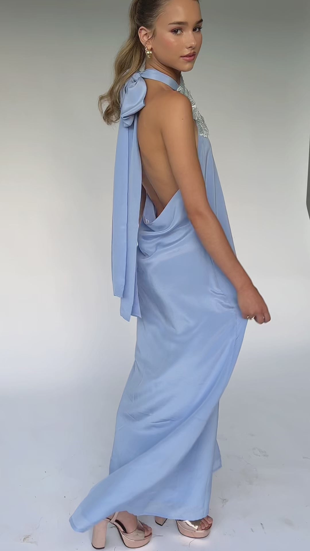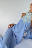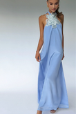 Light Blue Halter Neck Maxi Dress with Floral Applique