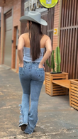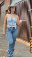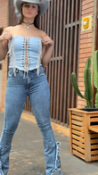 Light Blue Off-the-shoulder Corset and High-waisted Flared Blue Jeans Set
