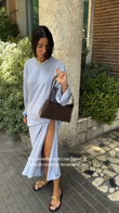 Light Blue Oversized Split - Hem Sweatshirt Dress