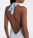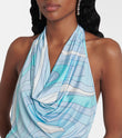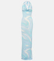 Light Blue Printed Halter Cowl Neck Maxi Dress