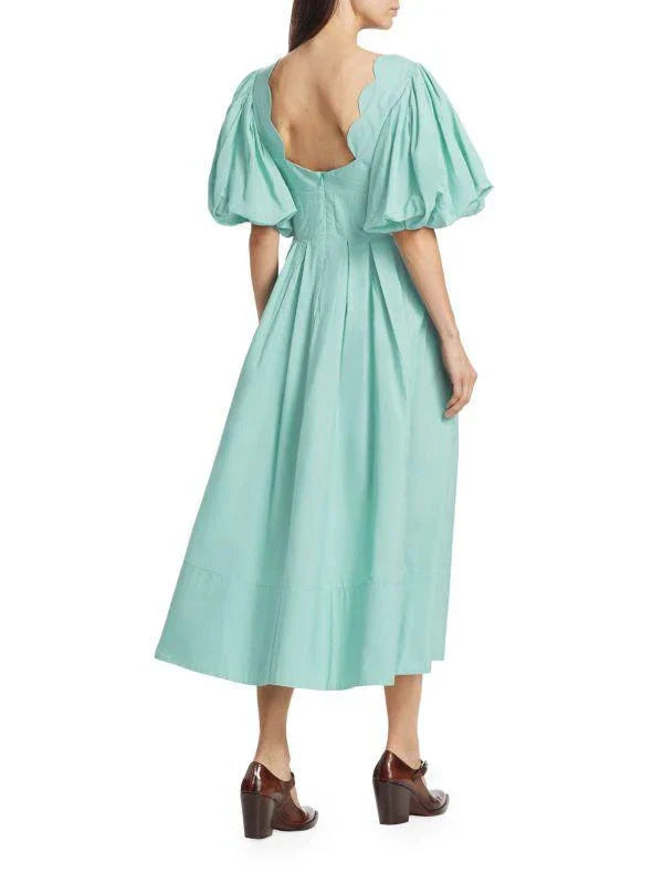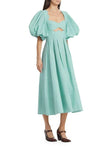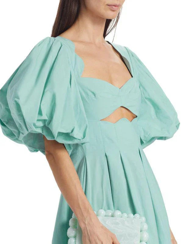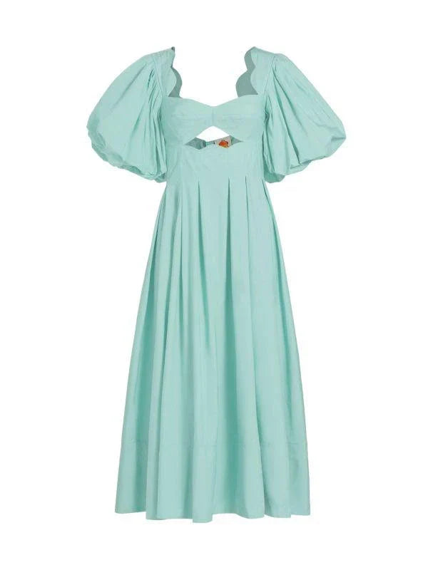 Light Blue Puff - Sleeve Cut - Out Midi Dress