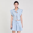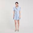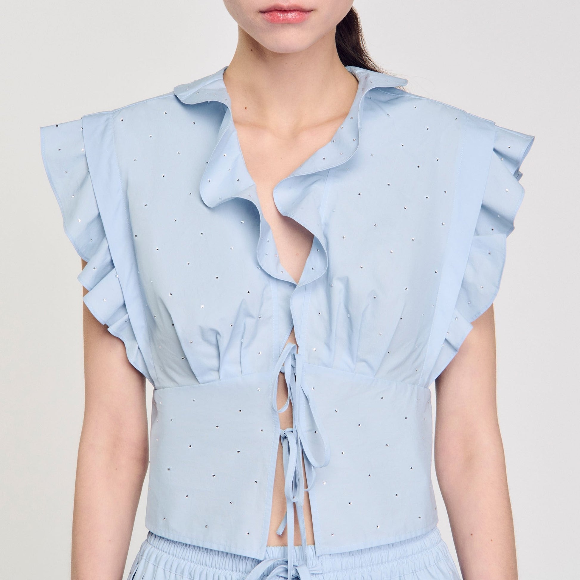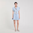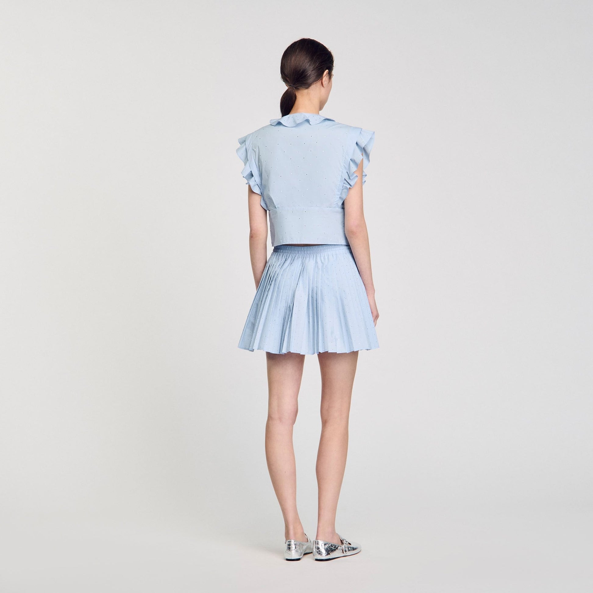Light Blue Ruffled Crop Top and Pleated Mini Skirt Set