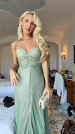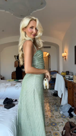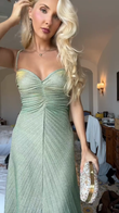 Light Green Sparkly Spaghetti - Strap Maxi Dress