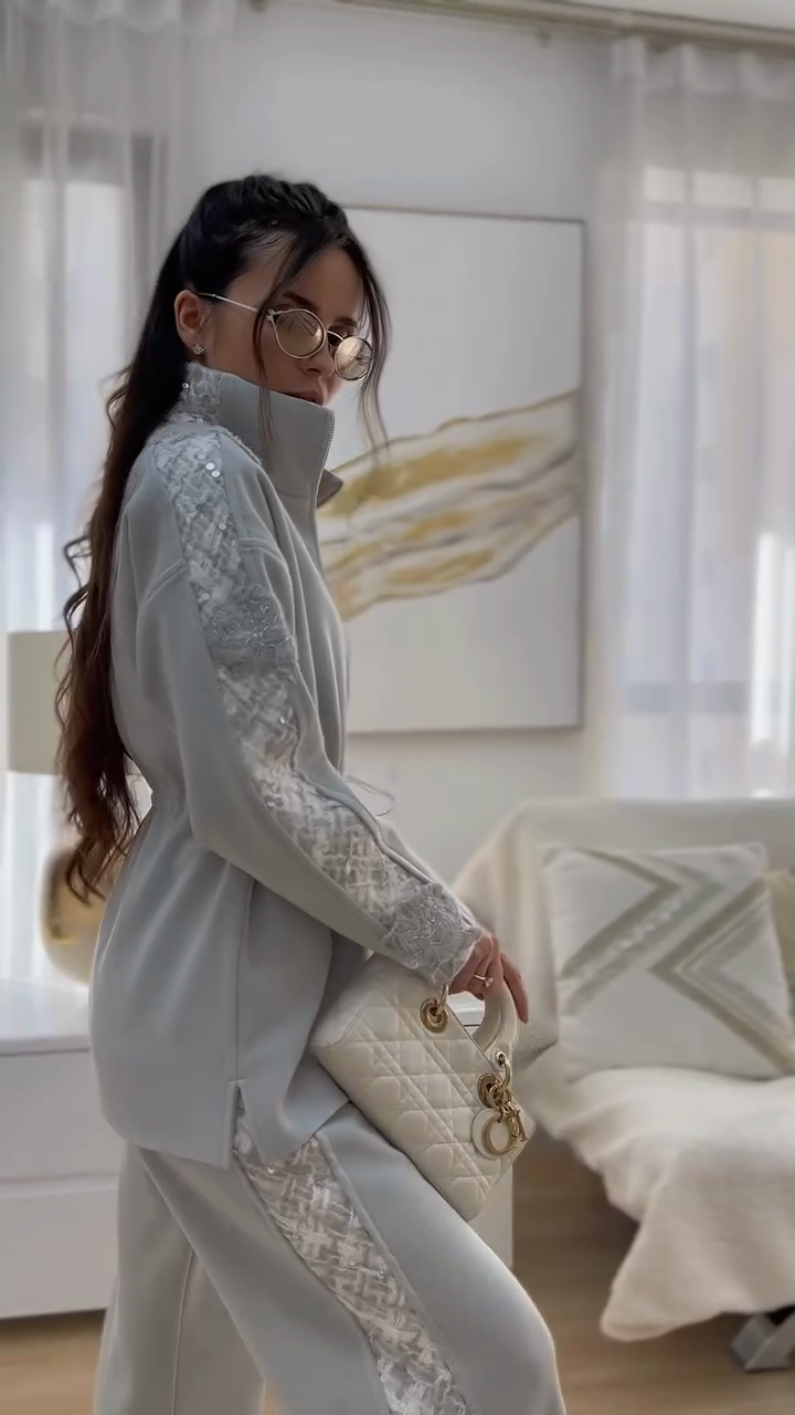 Light grey embroidered top and pants set
