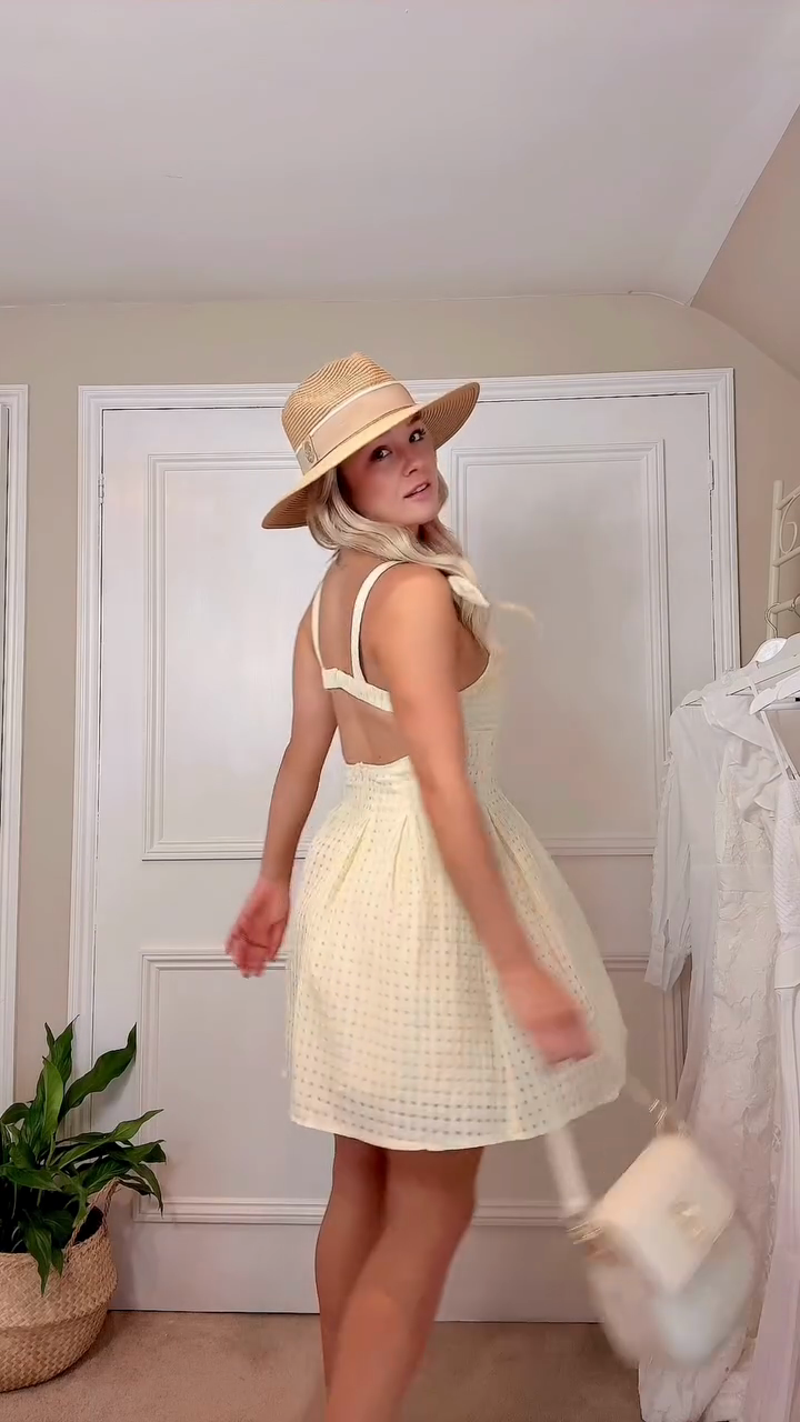 Light Yellow Smocked - Bodice Mini Dress with Bow - Shoulder Details