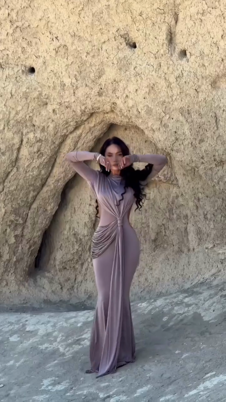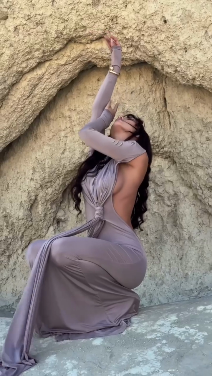 Lilac Cutout Long Sleeve Maxi Dress