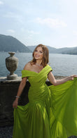 Lime Green Off - Shoulder Ruched Maxi Gown Product Description