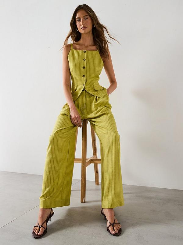 Lime Green Pinstriped Sleeveless Vest and Wide - leg Pants Set