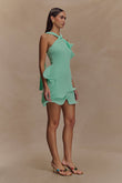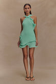 Mint Green Knit Halter Neck Ruffle Mini Dress