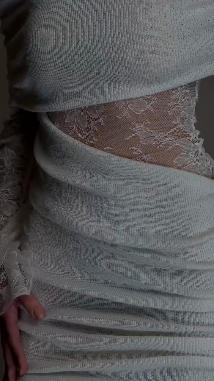 Mint Green One - Shoulder Mini Dress with Lace Sleeves
