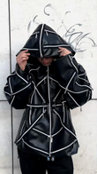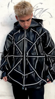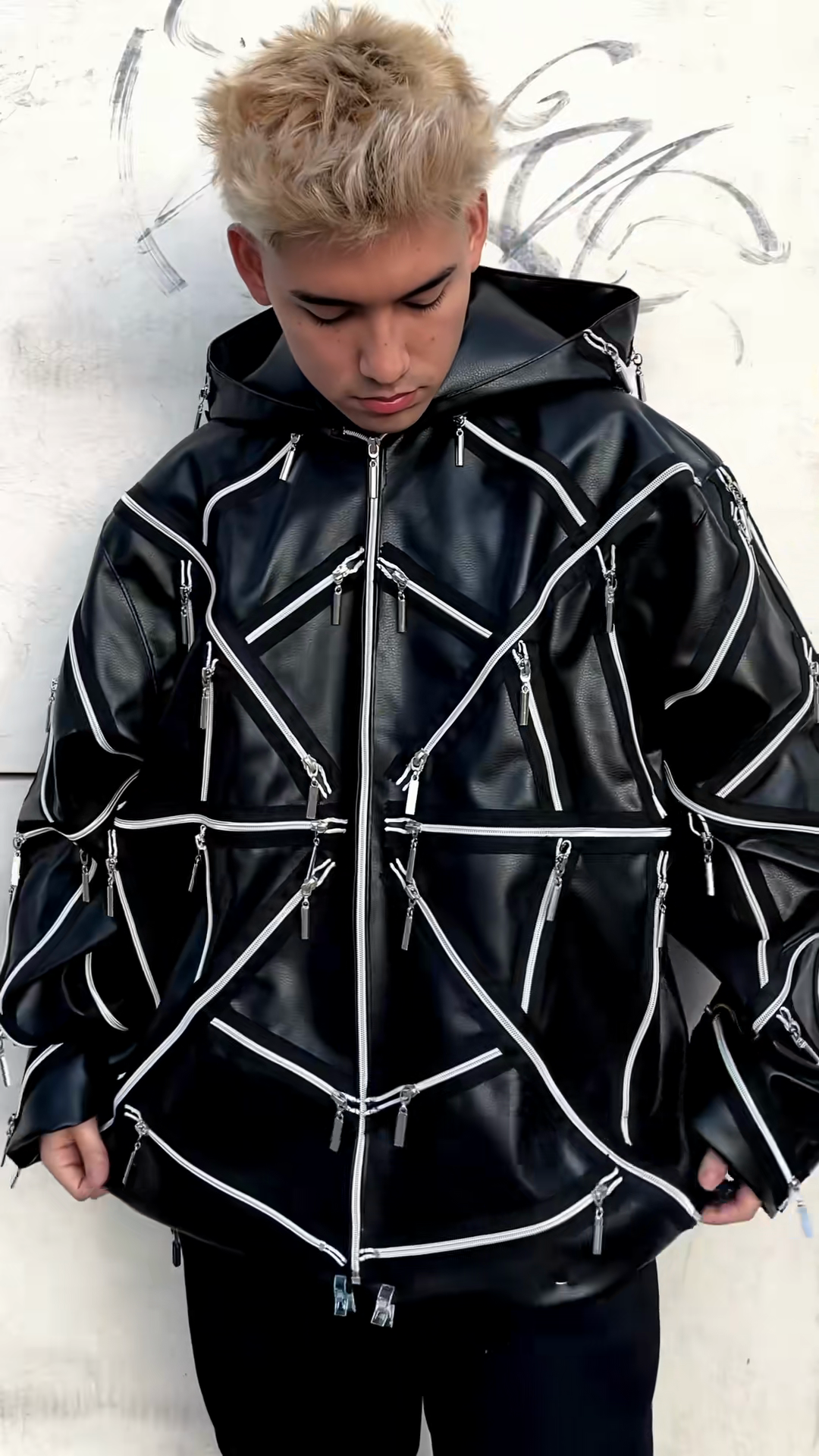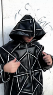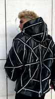 Multi - Zip Black Hooded Leather Jacket