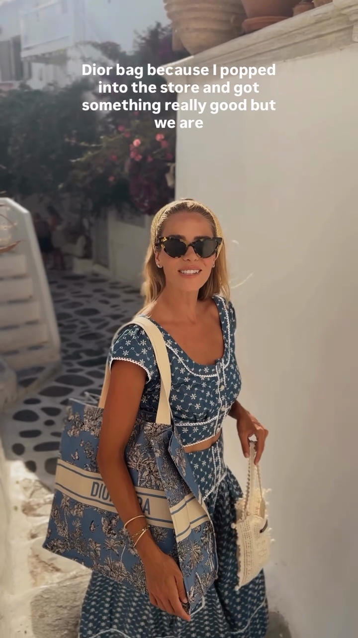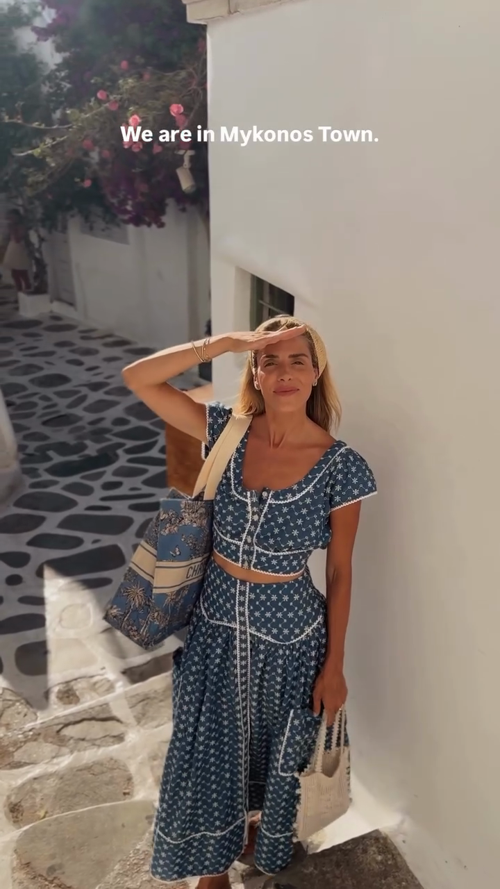 Navy Blue and White Print Crop Top and Maxi Skirt Set
