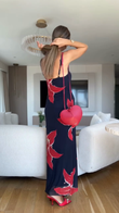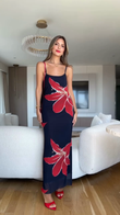 Navy Blue Floral Print Maxi Dress