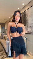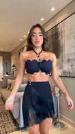 Navy Blue Scalloped - edge Crop Top and Fringe Skirt Set