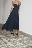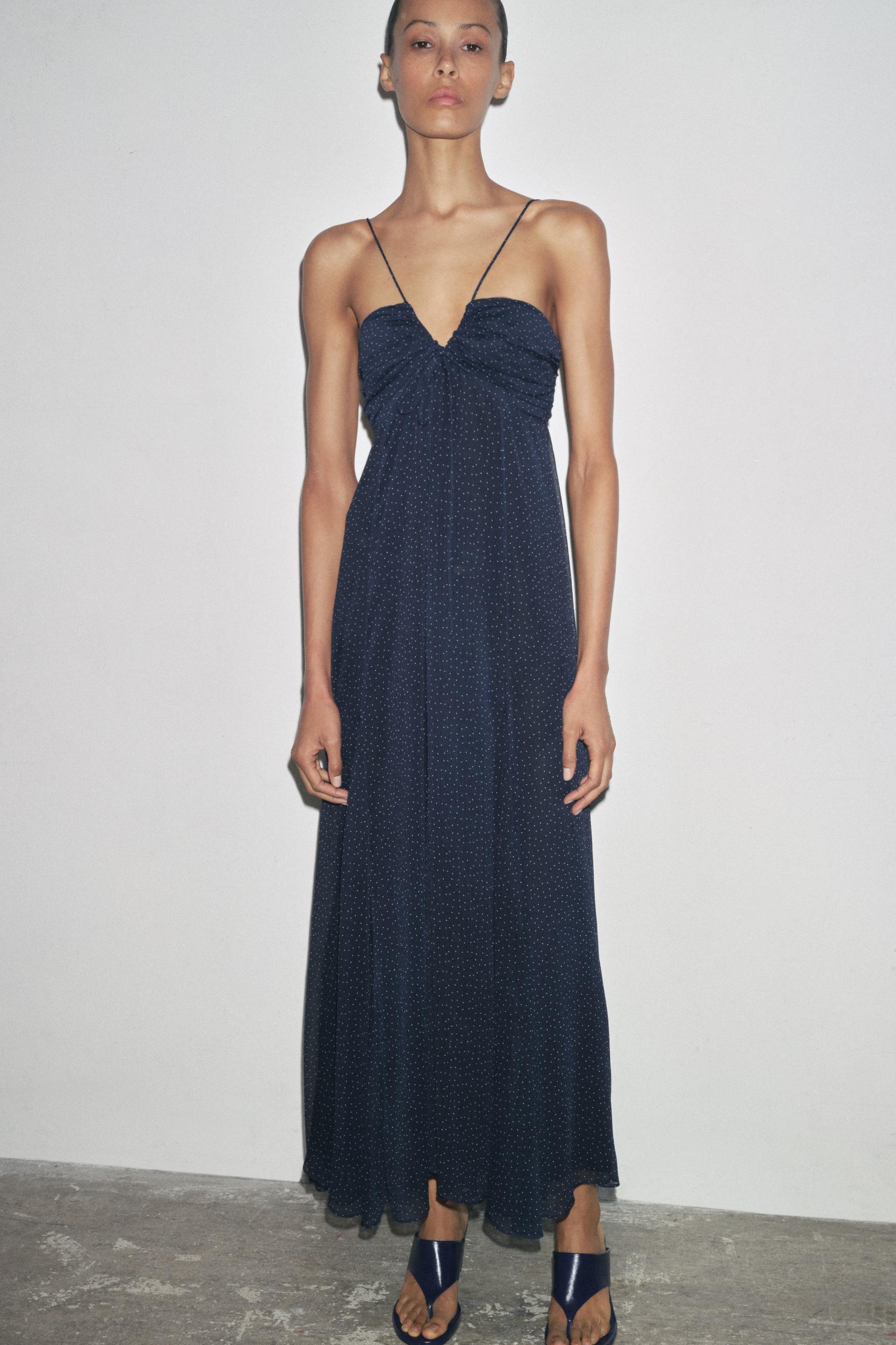 Navy Polka Dot Spaghetti - Strap Maxi Dress