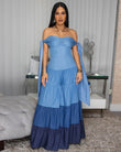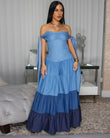 Off - the - Shoulder Ombre Denim Maxi Dress