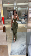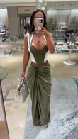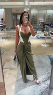 Olive Green and White Halter Crop Top and Maxi Skirt Set